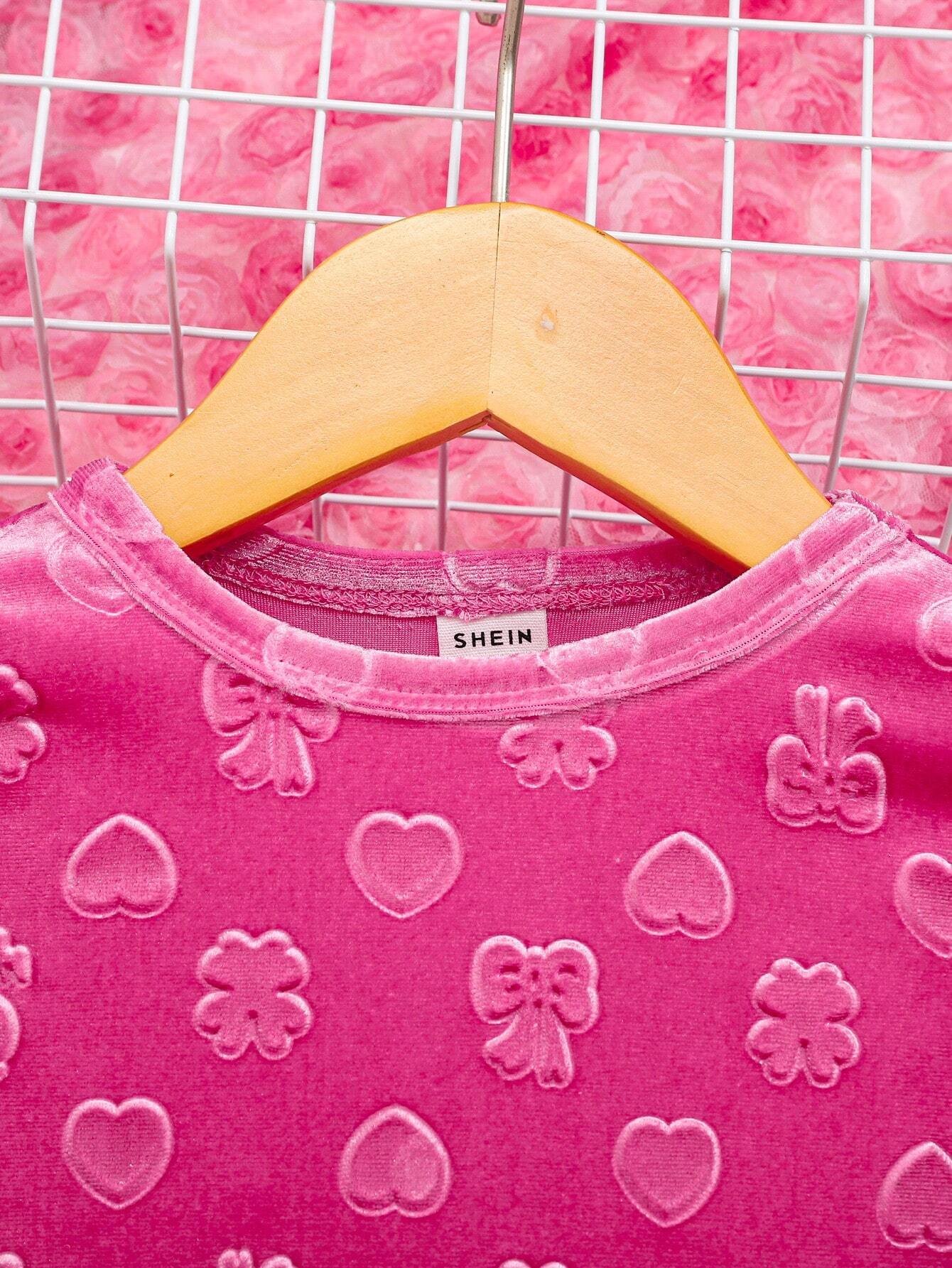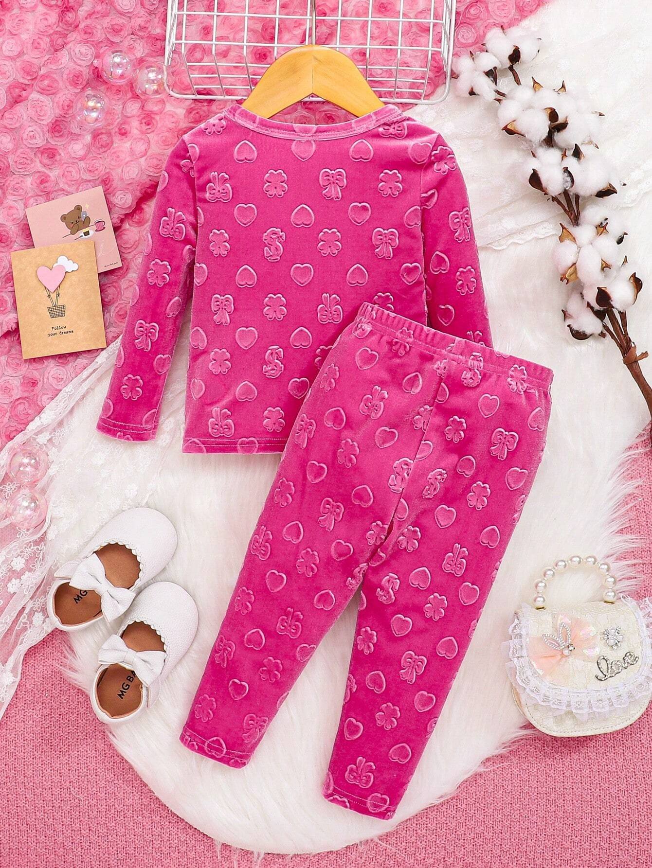 Conjunto De Dos Piezas De Terciopelo Lindo Para Beb? Ni?a Con Patr?n De Corazones Amorosos