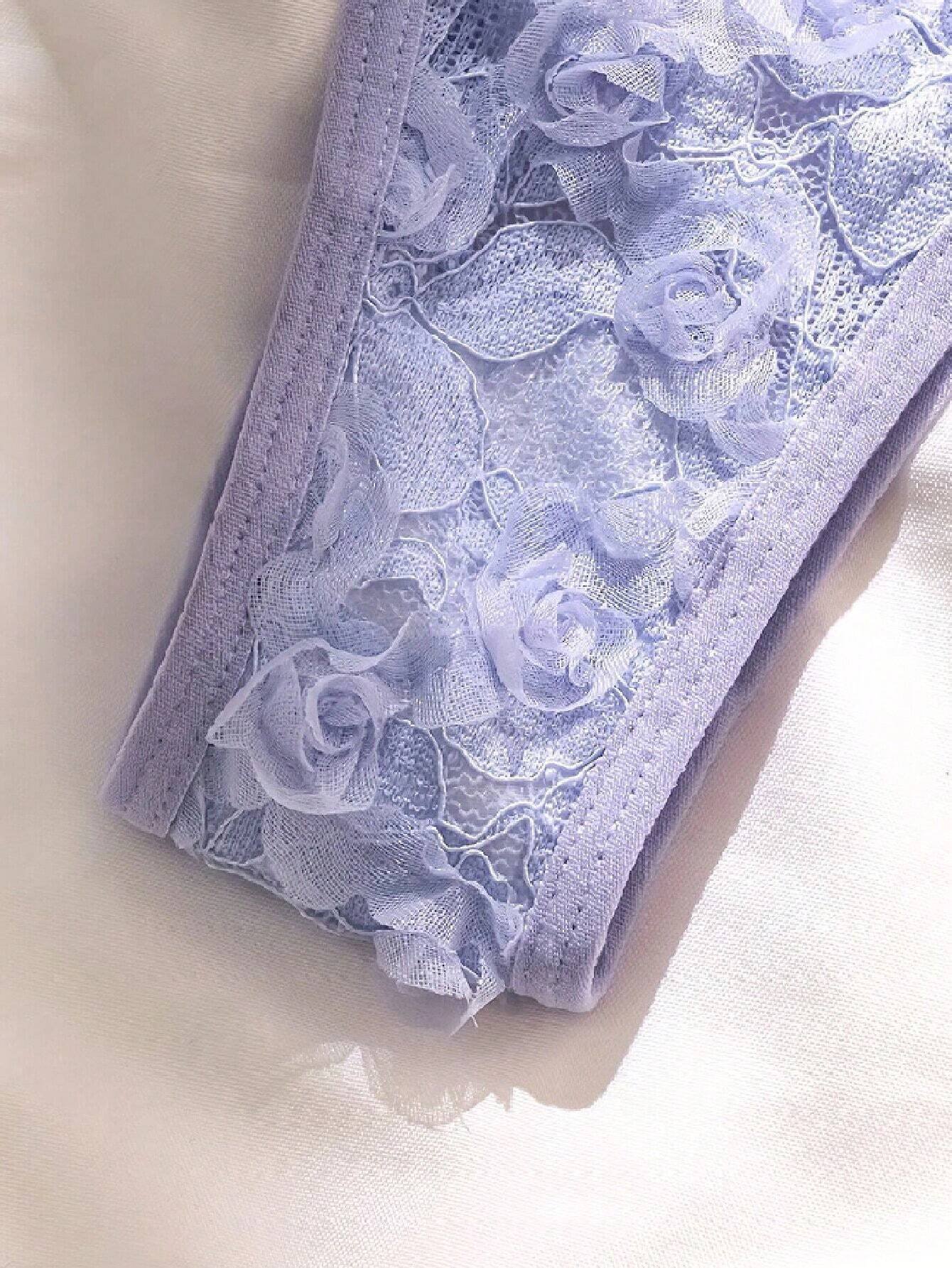 Conjunto De Lenceria De Encaje Y Rosa 3d Morado