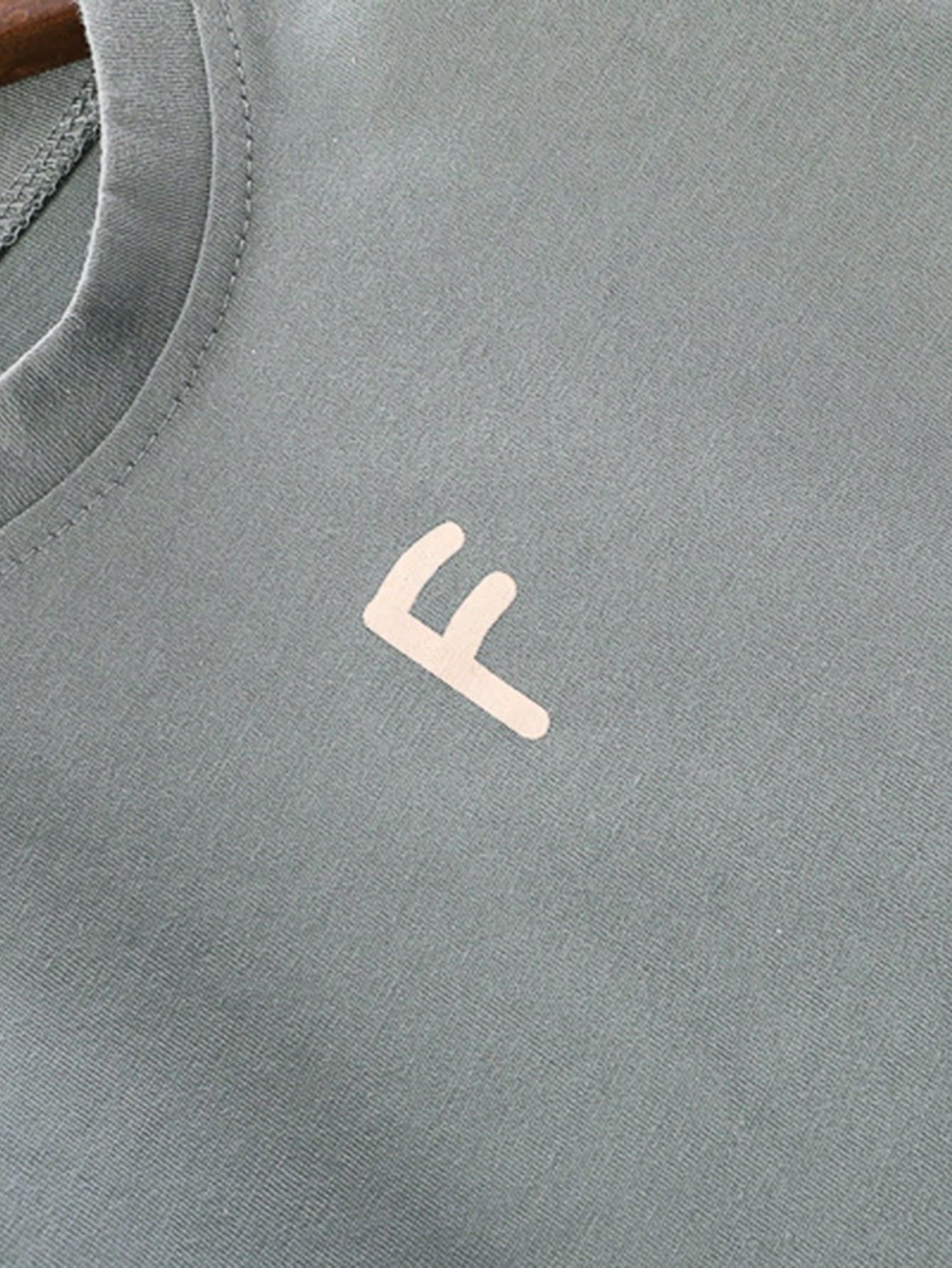 Conjunto de manga corta de cuello redondo con impresión de letras y color contrastante