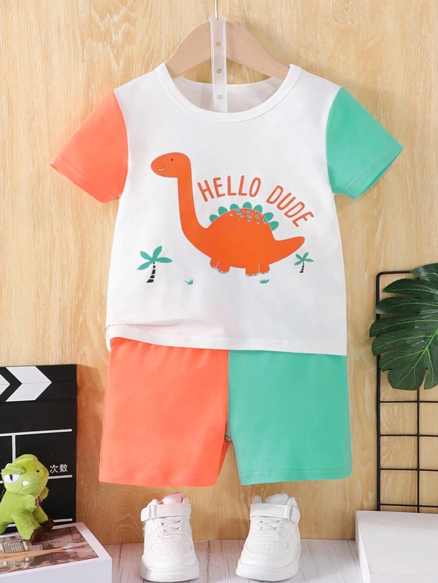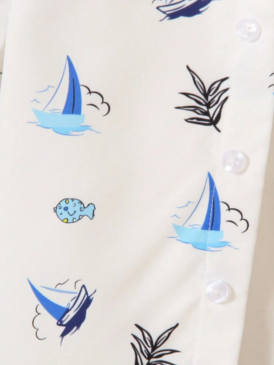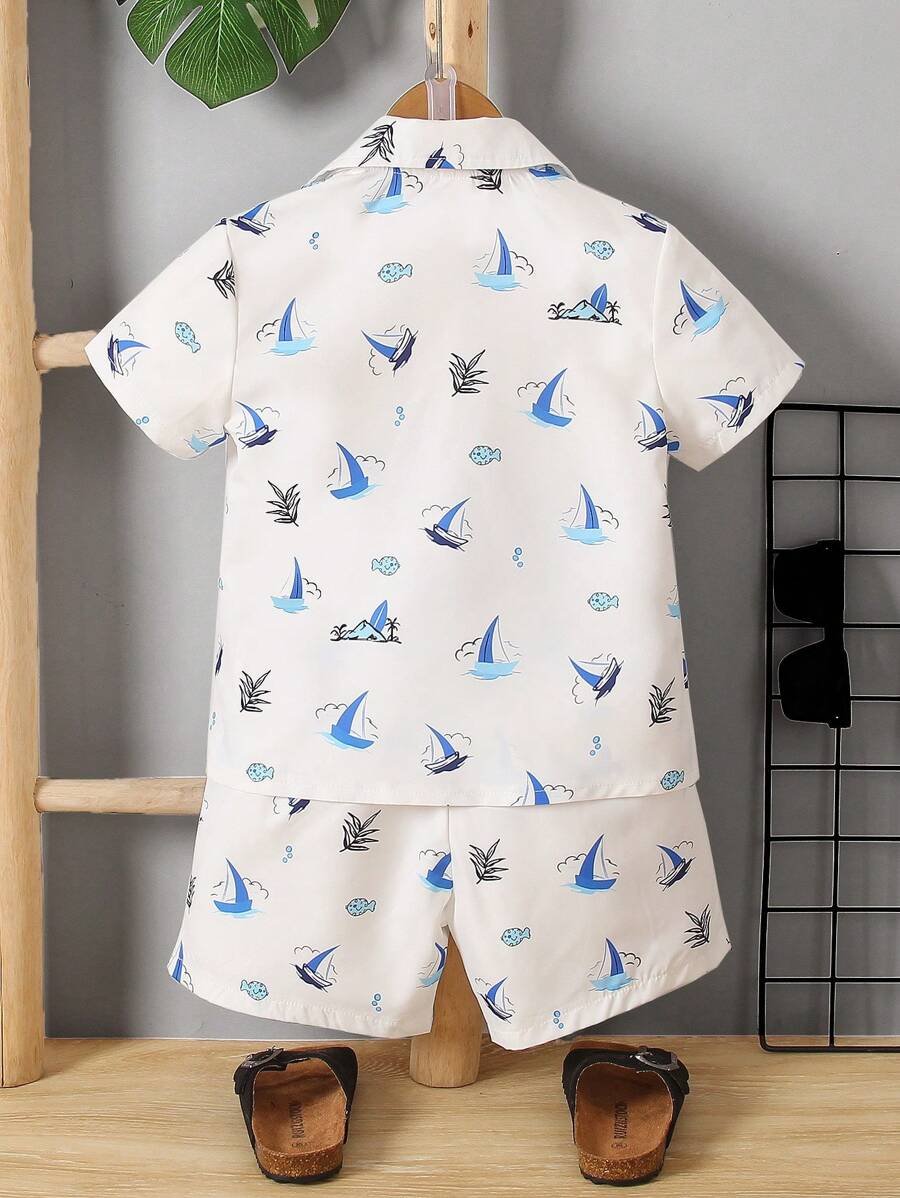 Conjunto De Pantalones Cortos Y Camisa De Manga Corta Con Estampado De Velero
