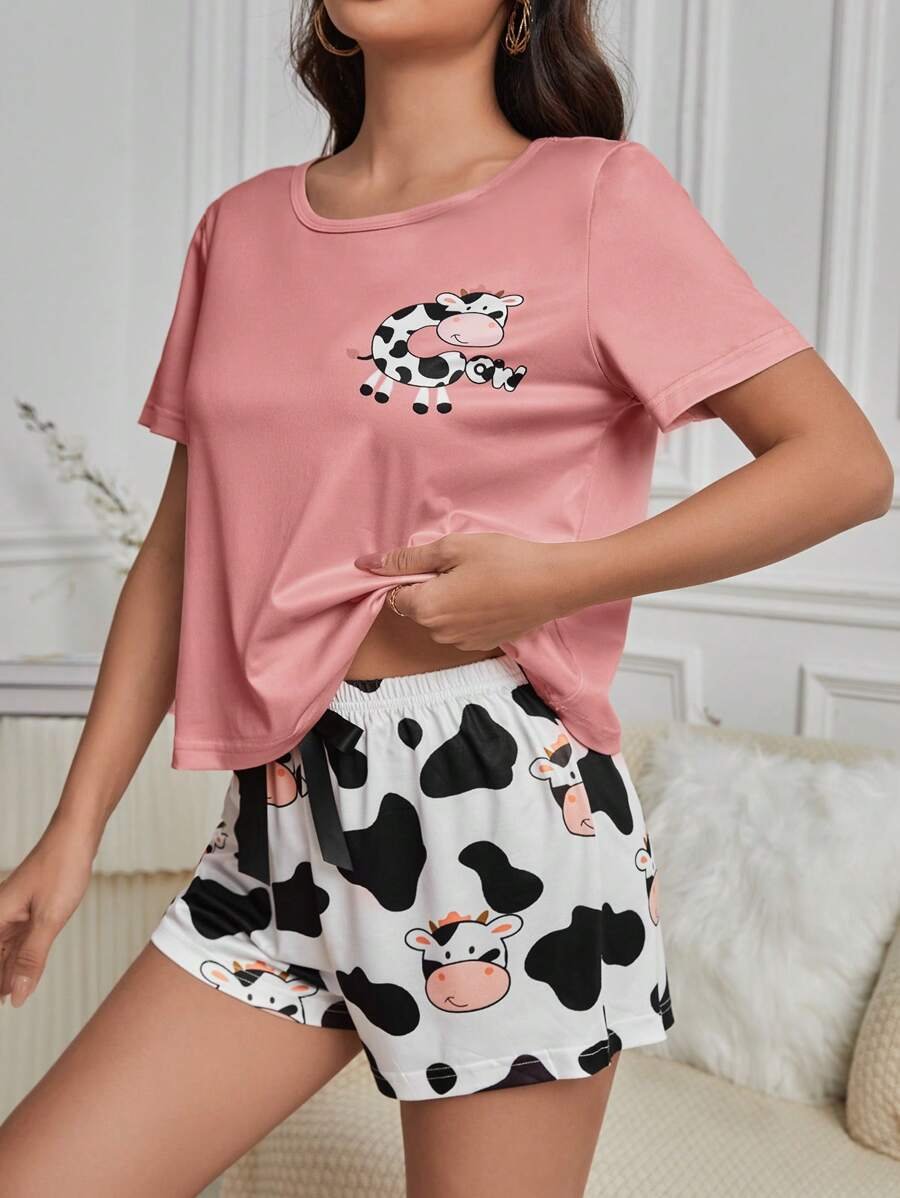 Conjunto de pijama con camiseta estampada de dibujos animados y pantalones cortos