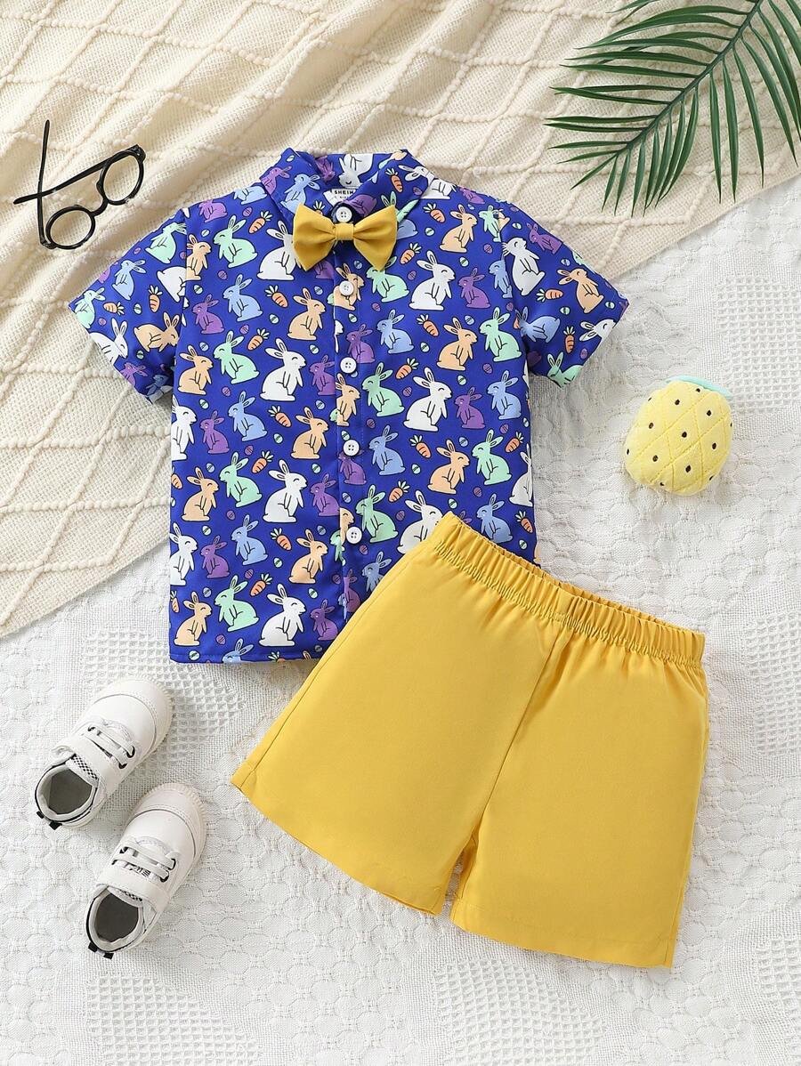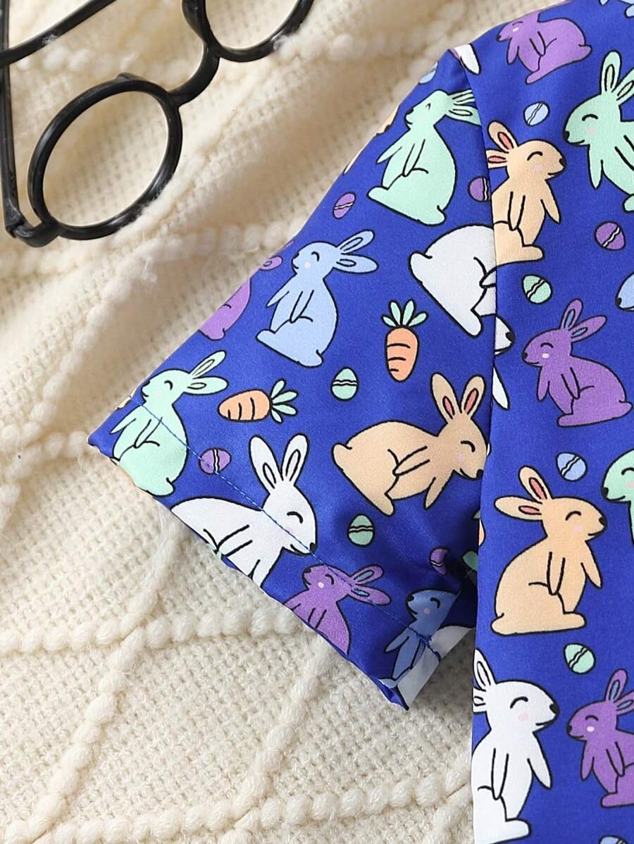 Conjunto De Ropa De Verano De 2 Piezas Colorido Y Lindo De Pascua Con Conejos