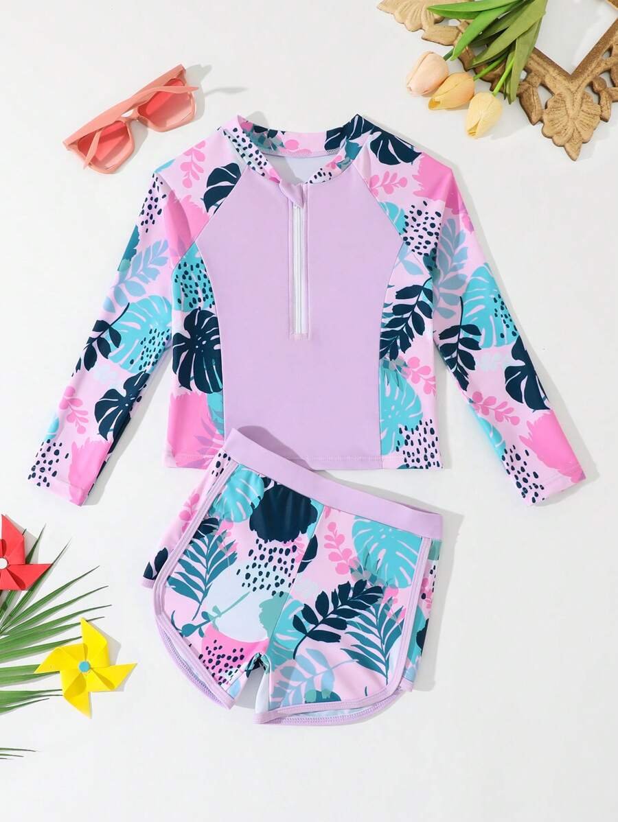 Conjunto de tankini de dos piezas con estampado aleatorio