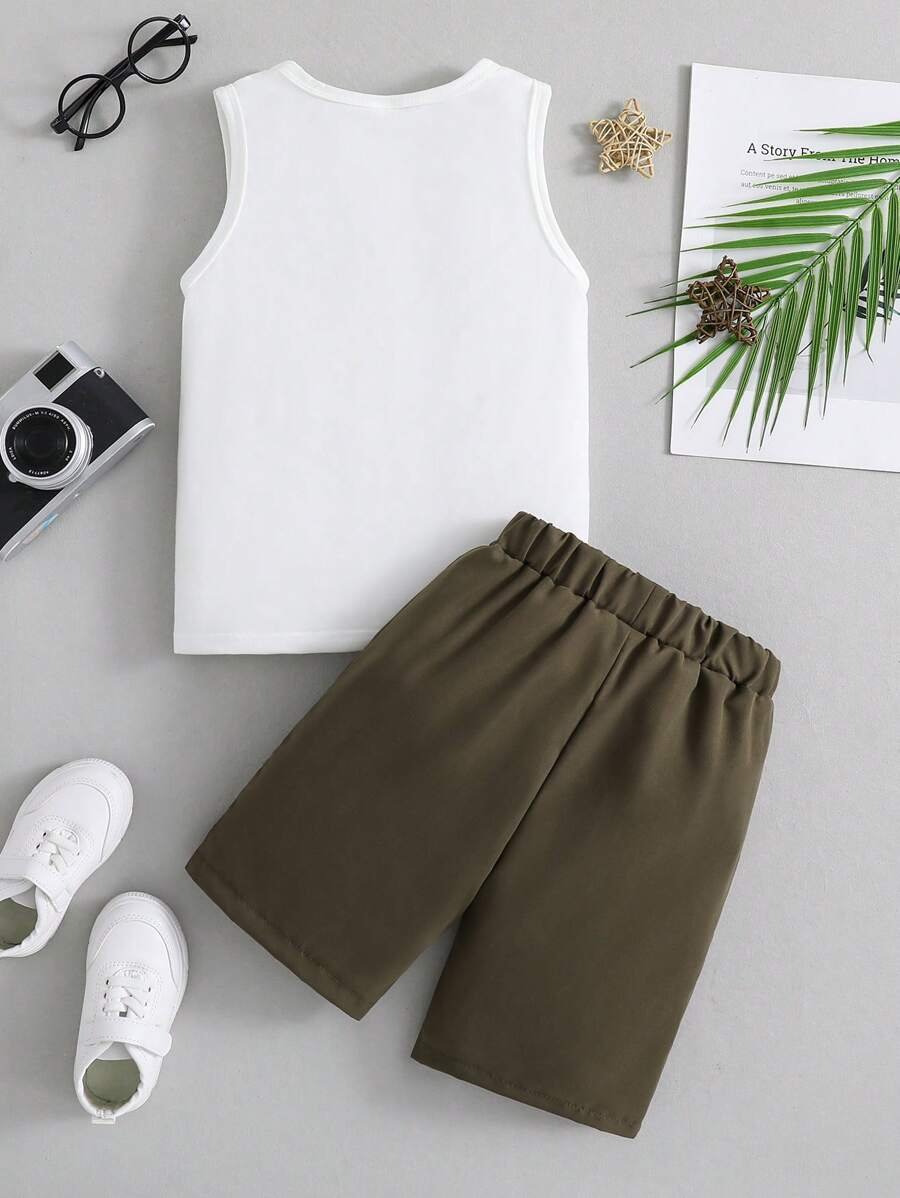 Conjunto De Tanque Y Pantalones Cortos Con Letras Impresas Para ni?o Peque?o