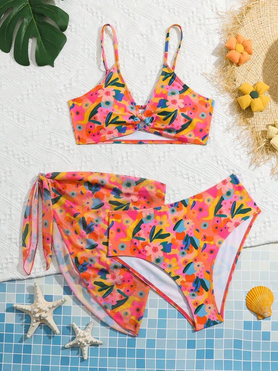 Conjunto De Tres Piezas De Ba?ador Completo Impreso Para Ni?as Adolescentes