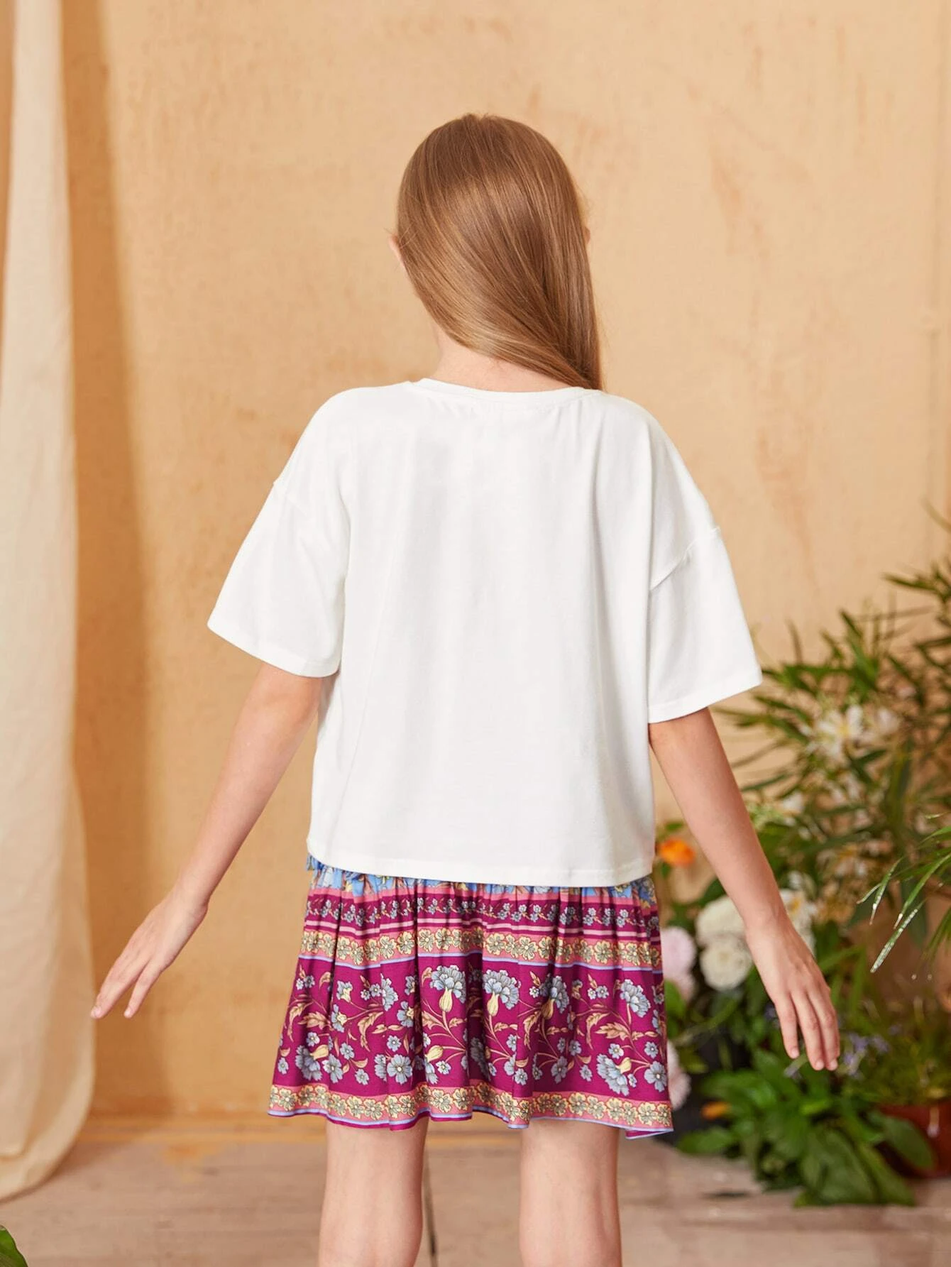 Conjuntos para ni?as Volante fruncido Volante r?gido Figuras Floral Casual