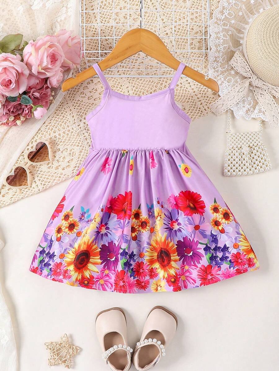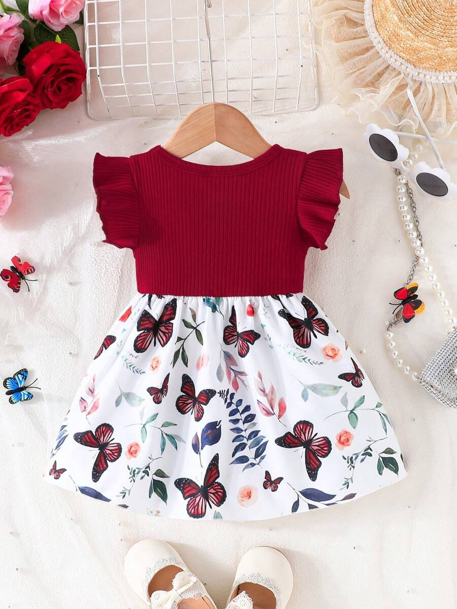 Elegante y delicado vestido de verano para niña con estampado de rosas y mariposas