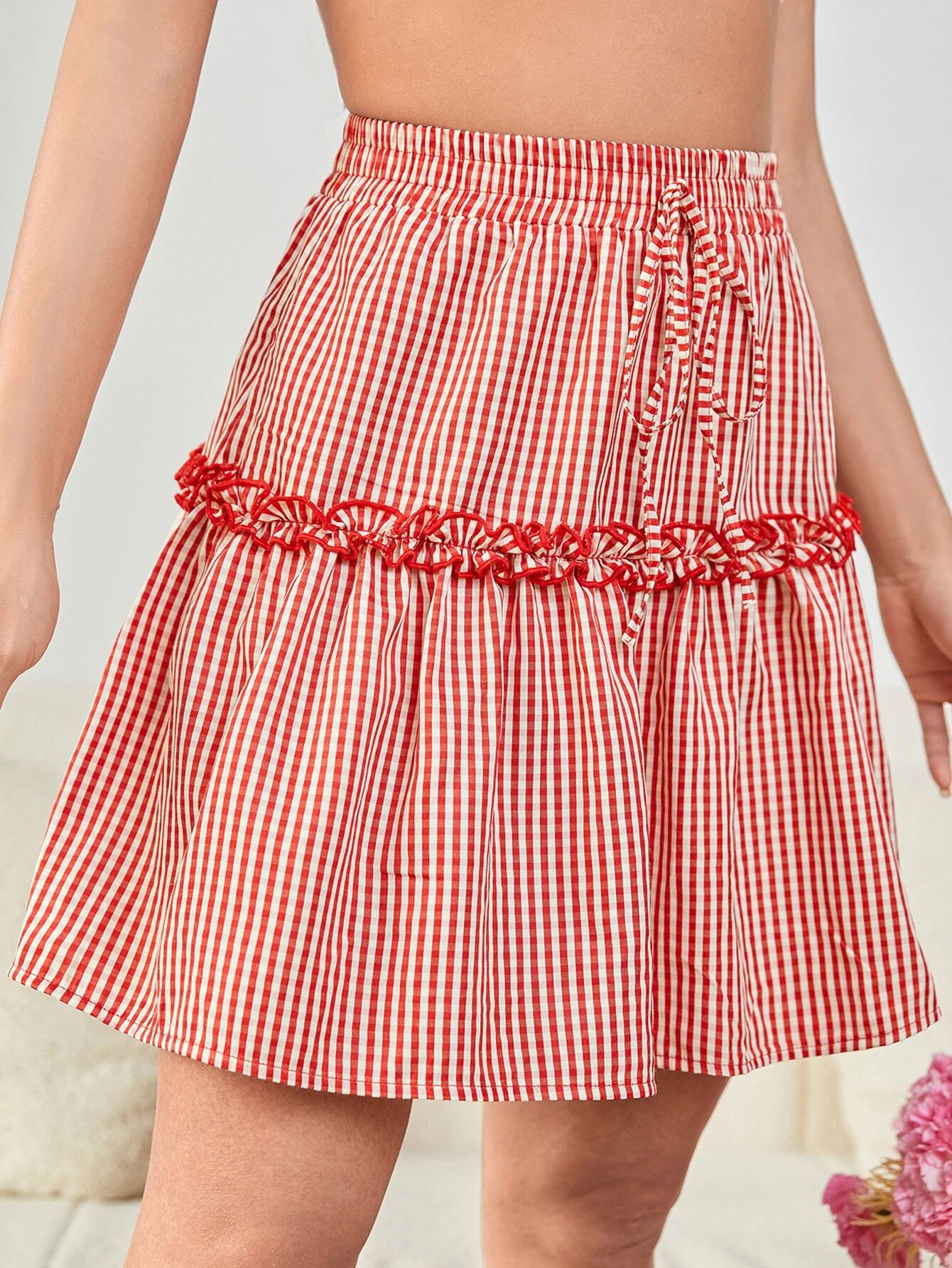 Falda de cuadros ribete fruncido con cord?n