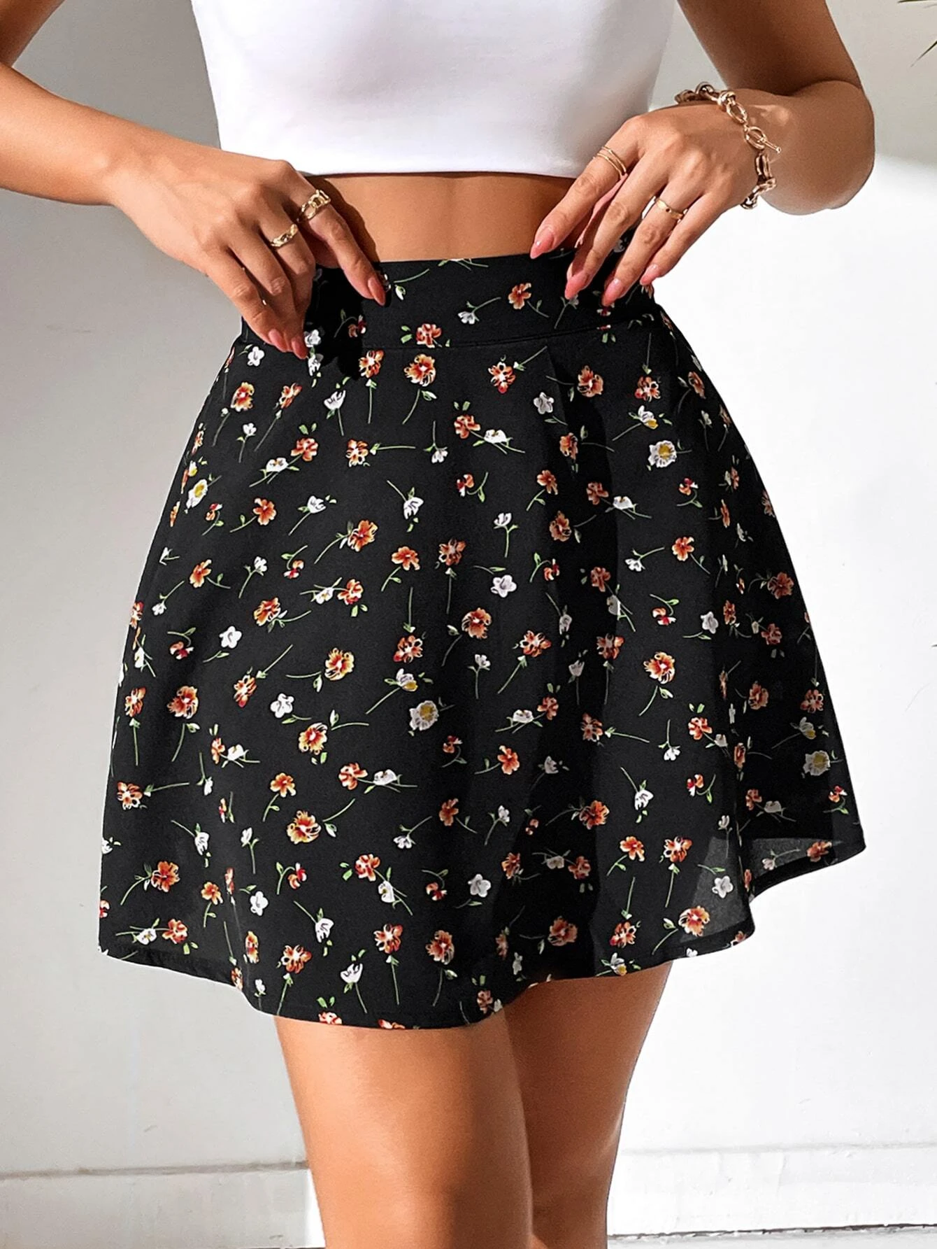 Falda de l?piz unicolor con dise?o de bot?n