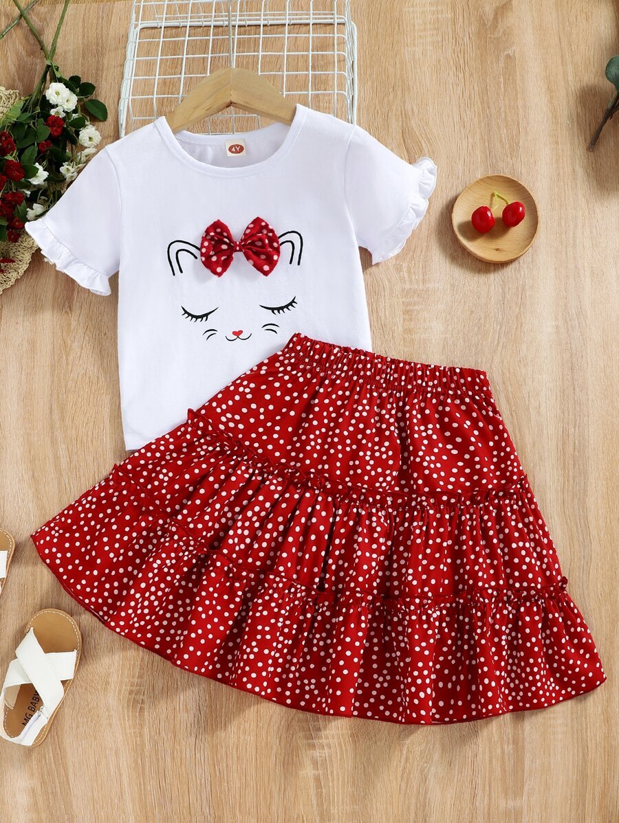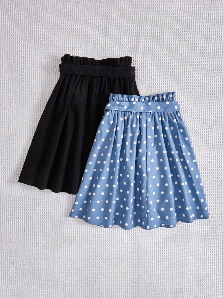 Falda De Lunares Y unicolor De Ajuste Holgado
