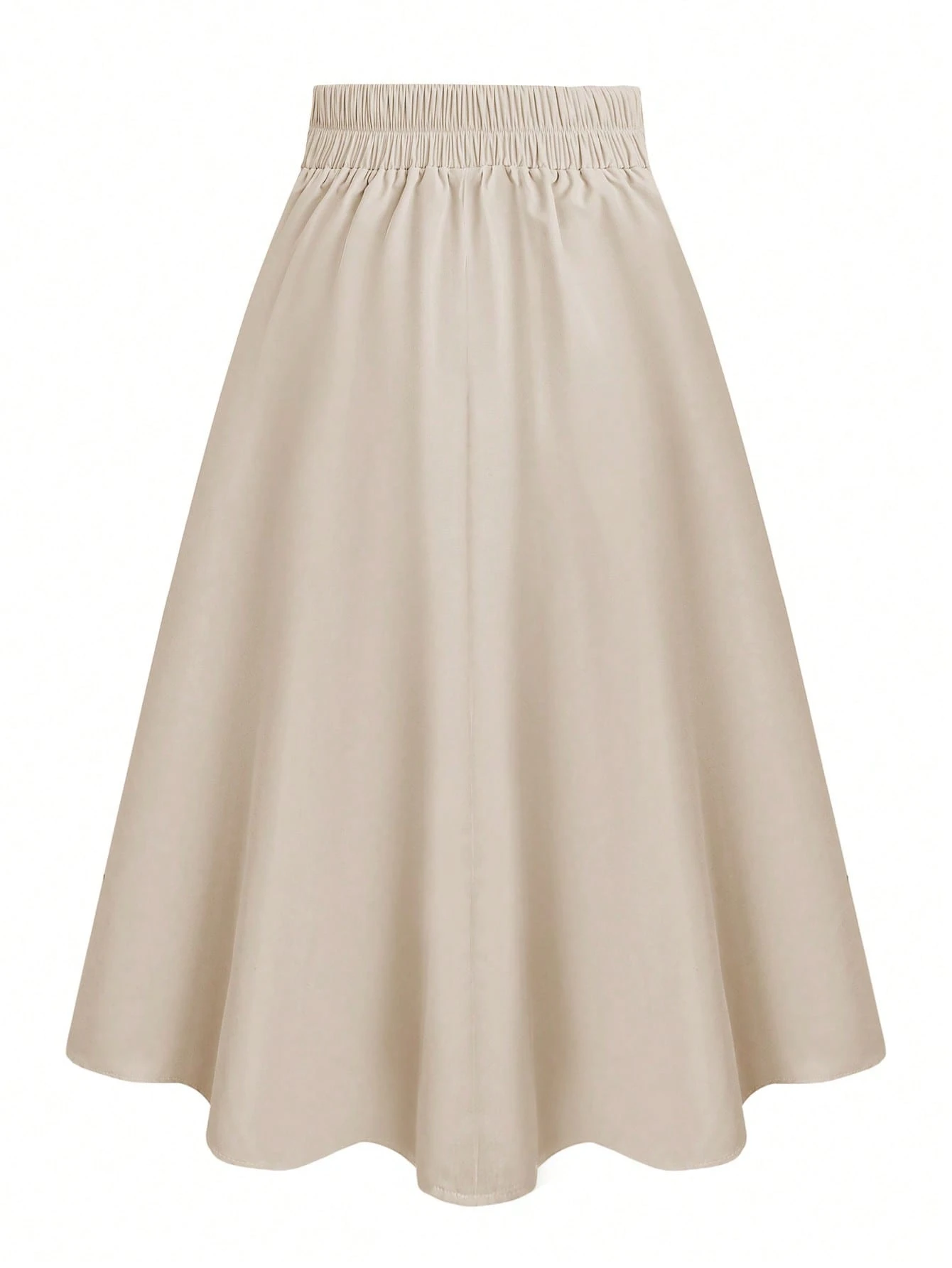 Falda de talle alto con diseño de botones, elástica en la cintura y campana