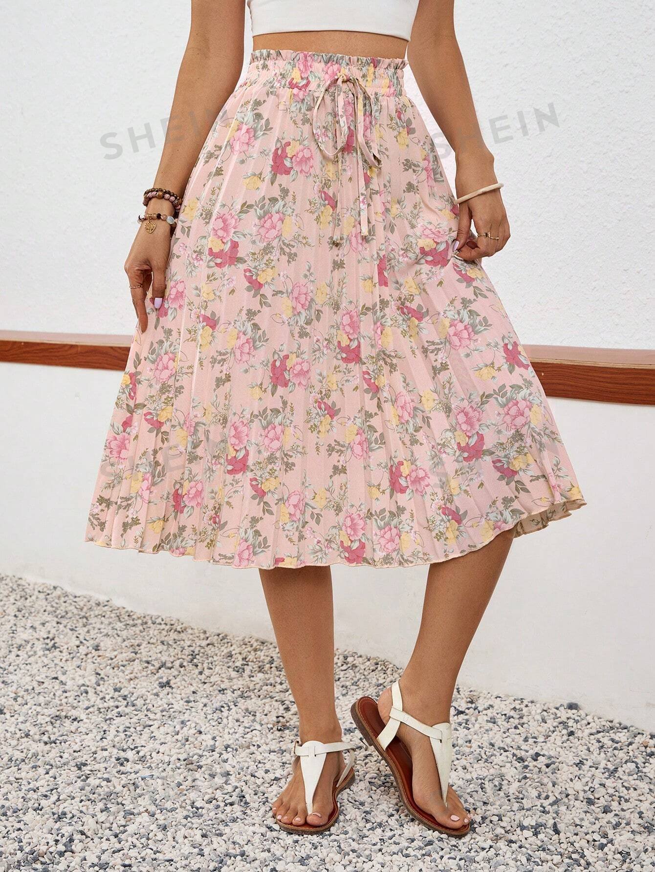 Falda estampada plisada romántica para mujer para vacaciones de verano