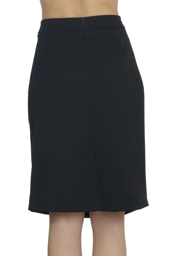 Falda formal uniforme, tiro medio, pretina ancha con botón y zipper posterior