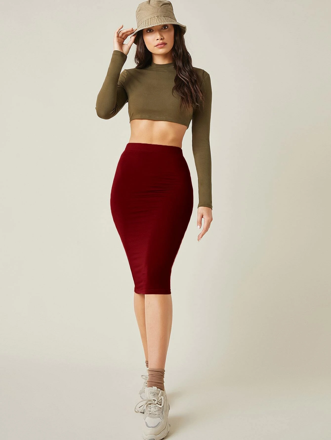 Falda l?piz unicolor de cintura alta