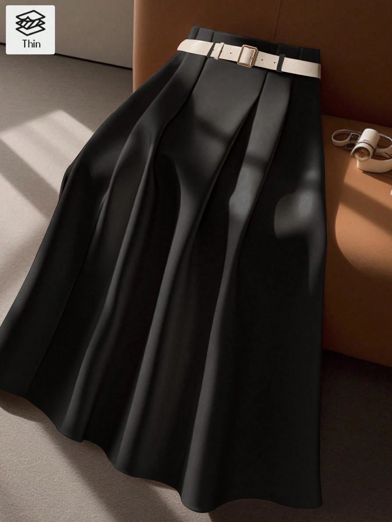 Falda larga y casual de oficina, cinturón de cintura, estilo de transporte