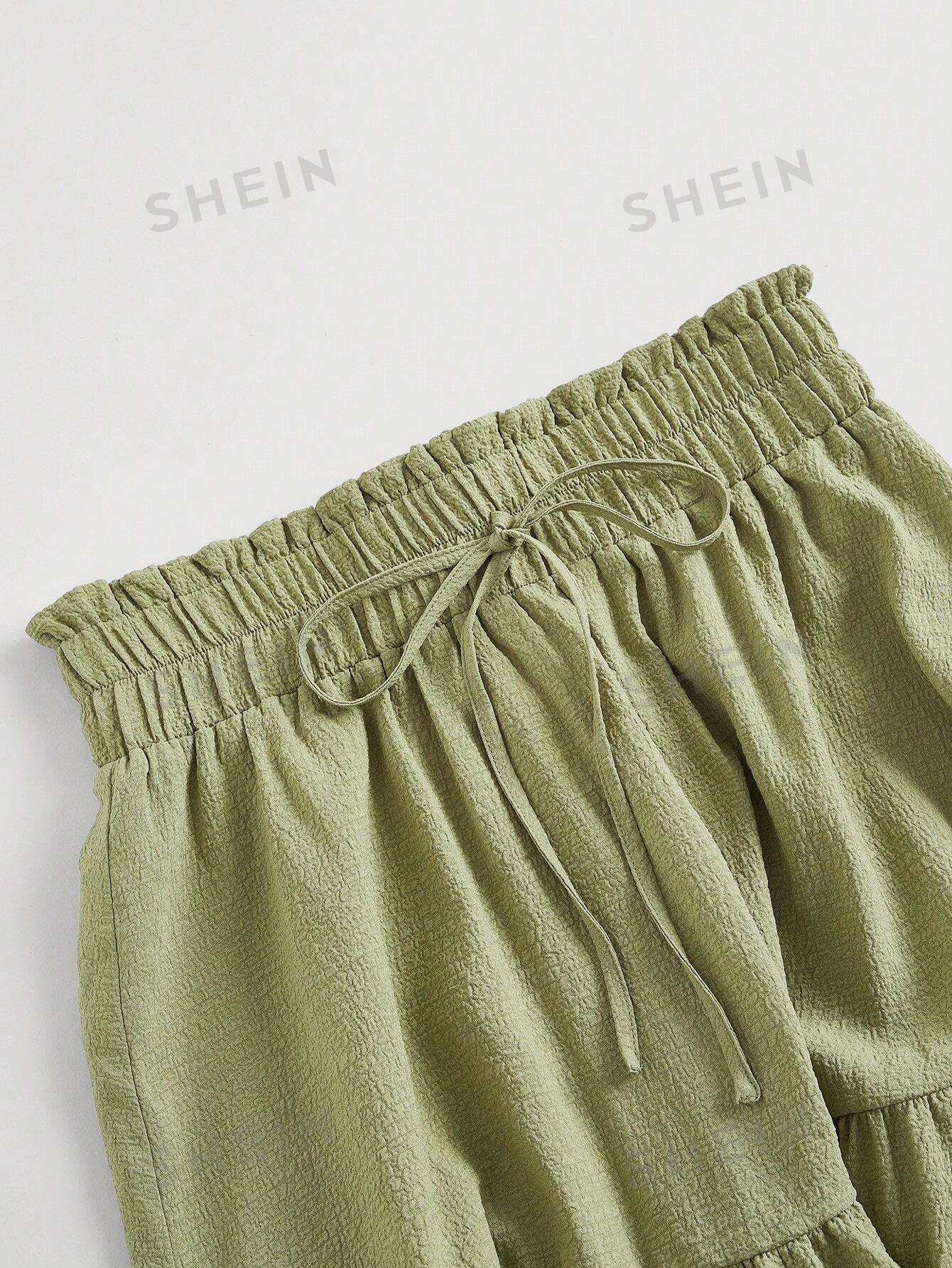 Falda unicolor con nudo delantero bajo con fruncido