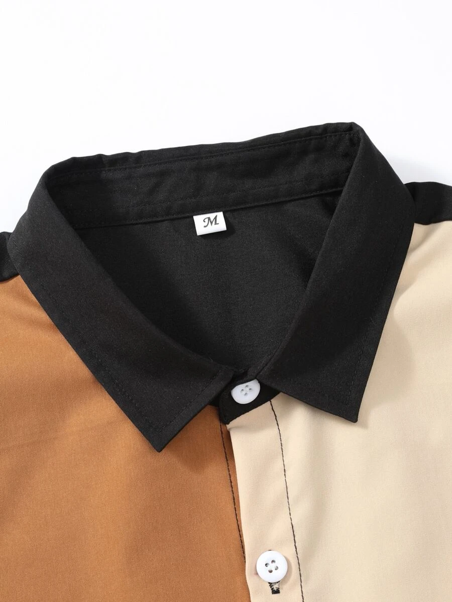 Camisa con estampado de letra de color combinado sin camiseta