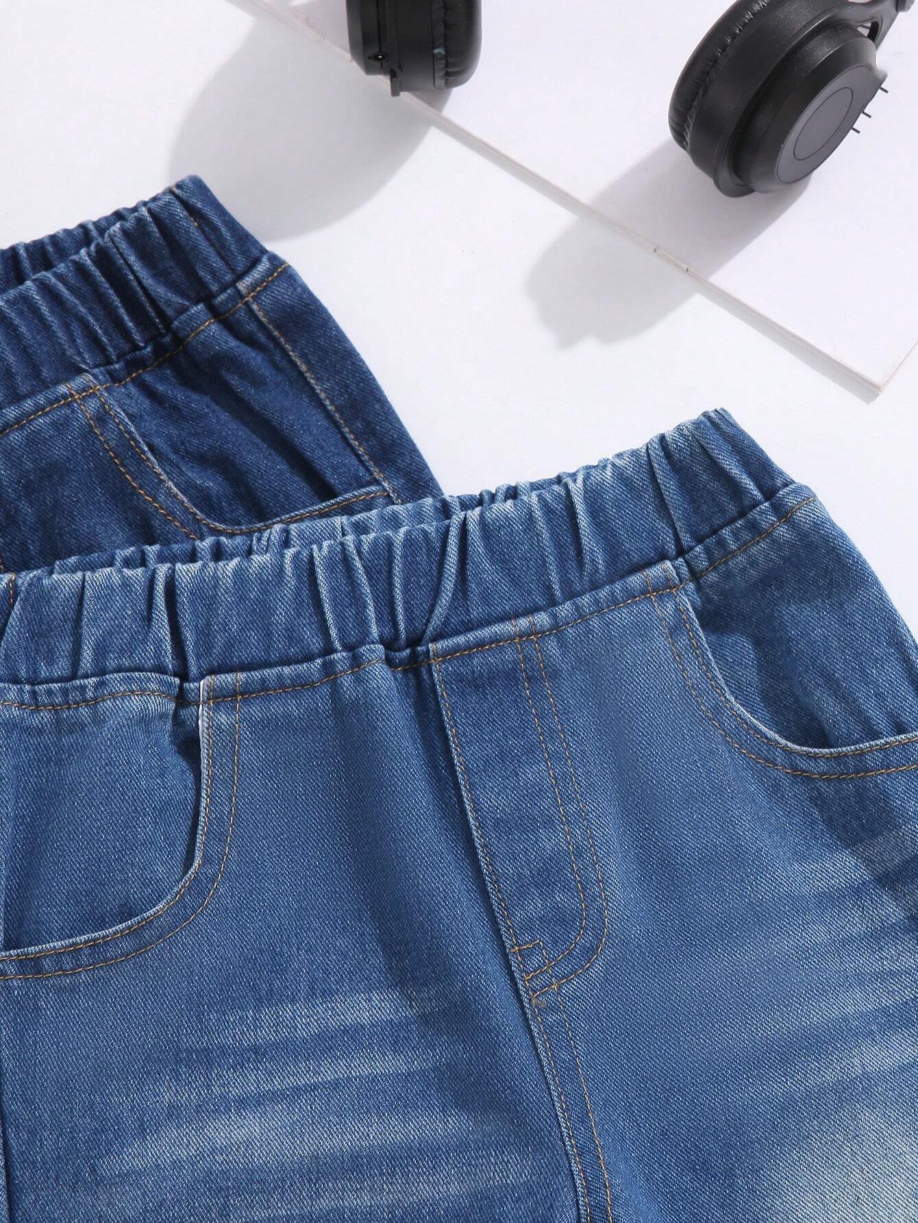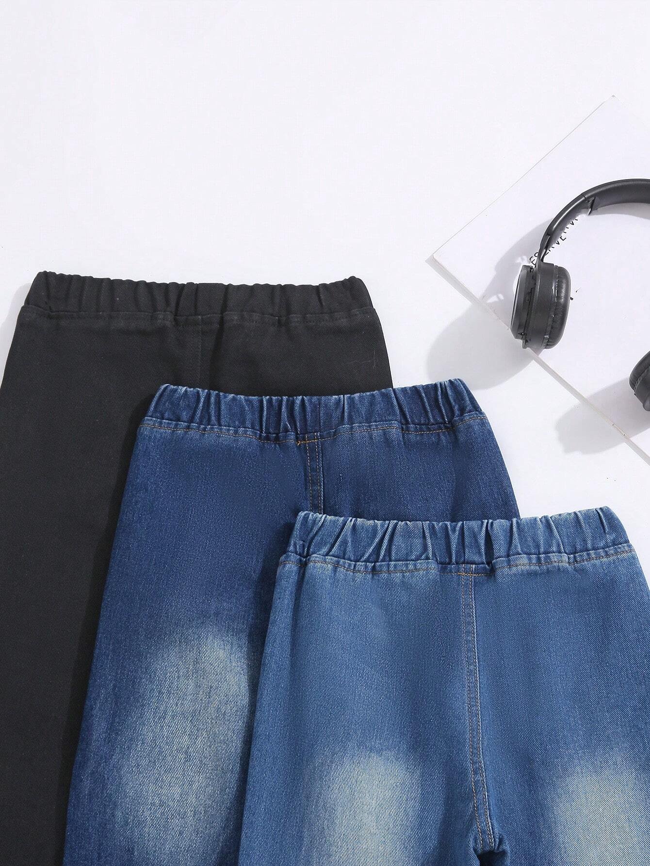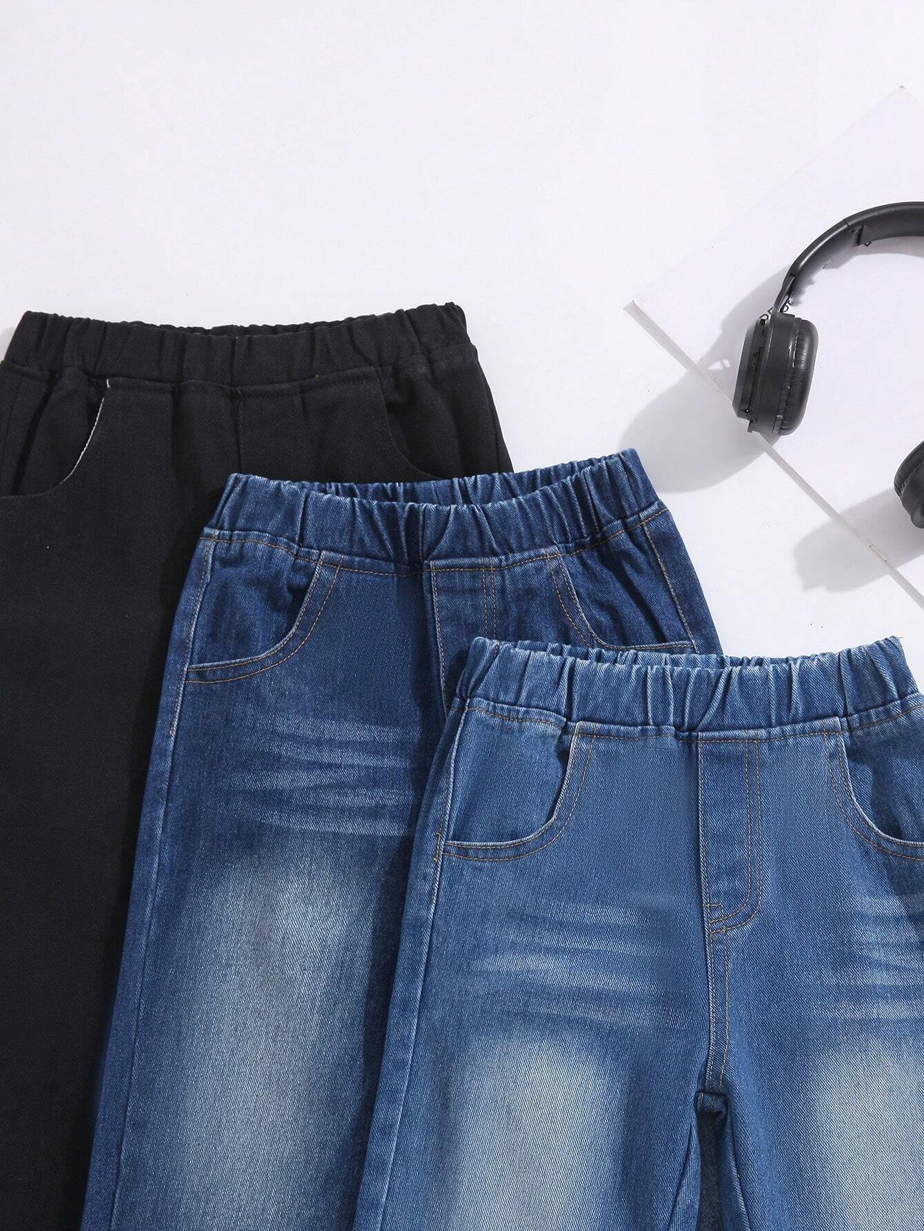 Jeans j?ven de cintura el?stica con bolsillo oblicuo unicolor