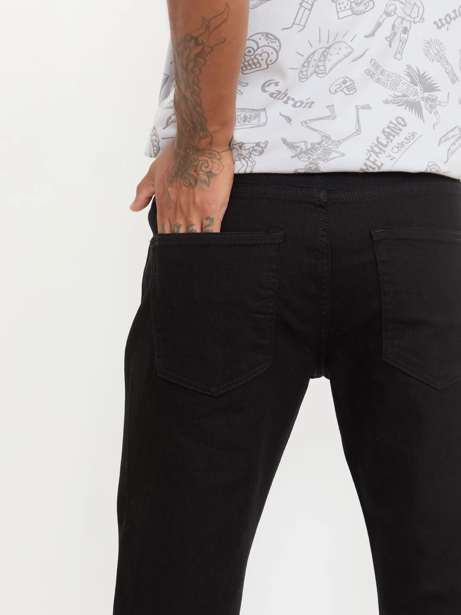 Jeans skinny negro para hombre de mezclilla, con cierre cremallera y botón. El Jeans perfecto que combina comodidad, durabilidad y tendencia.
