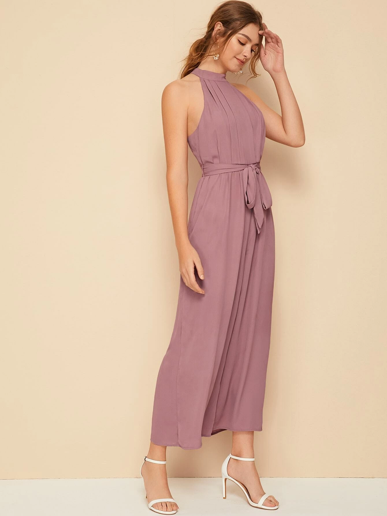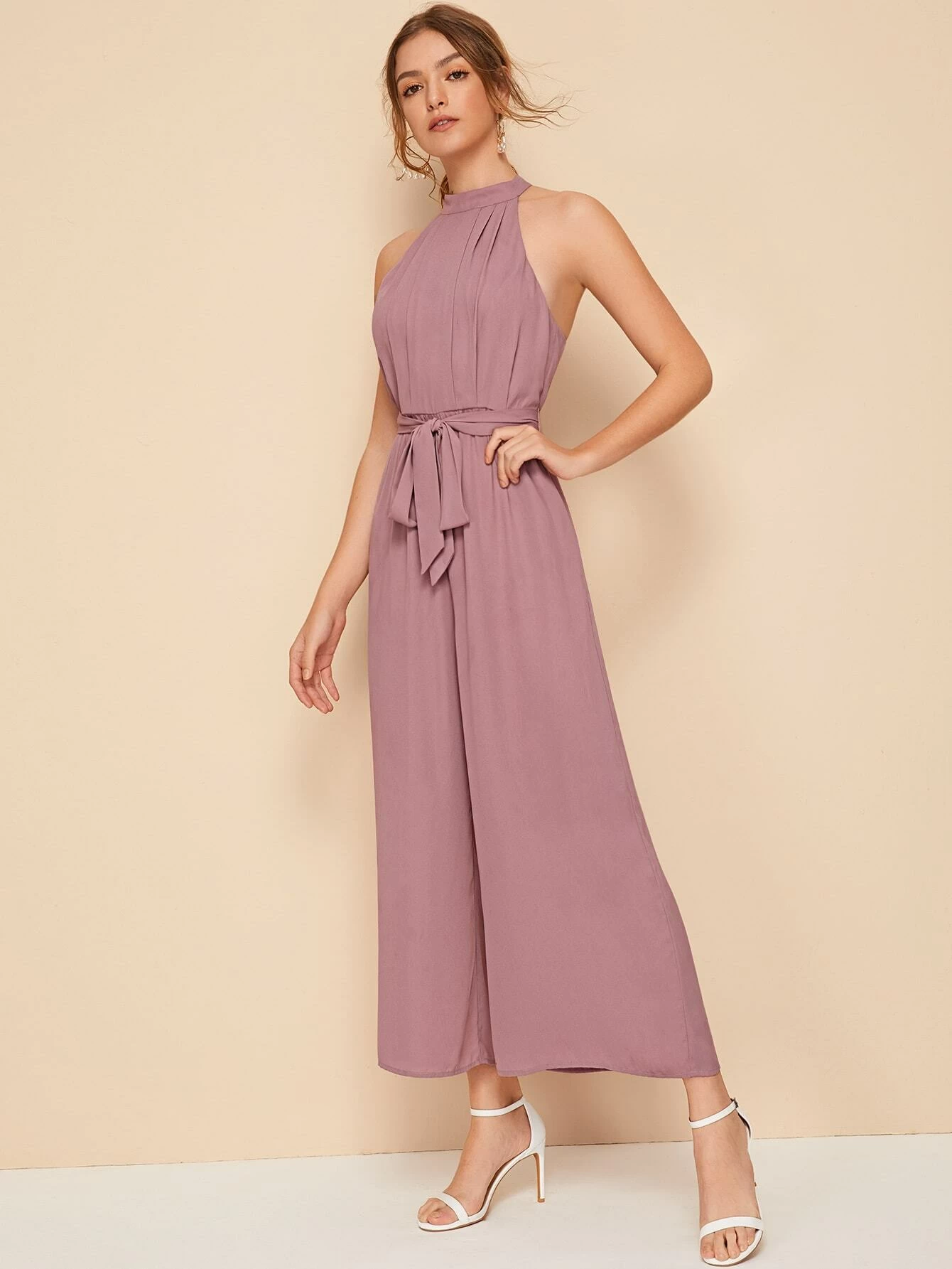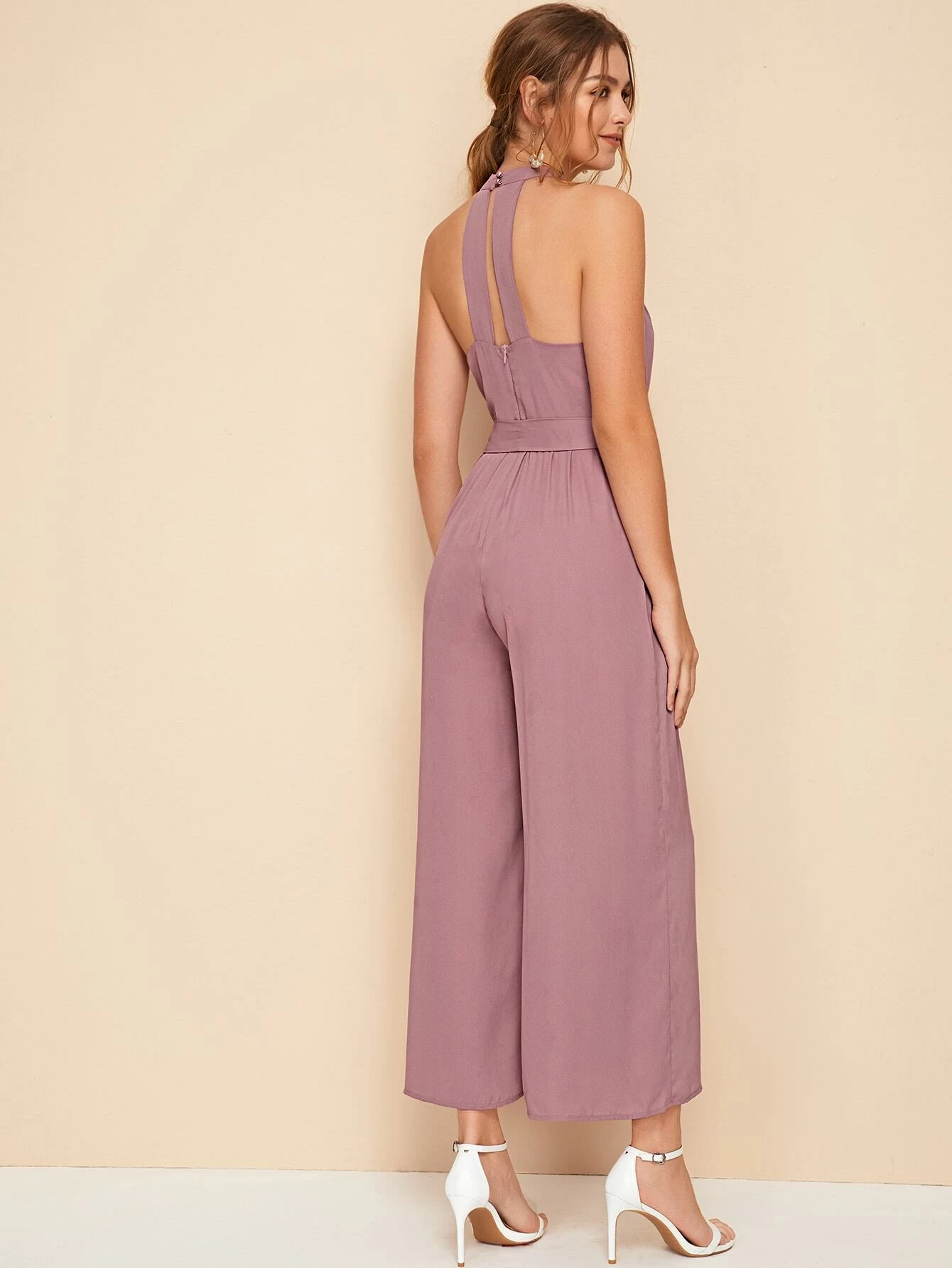 Jumpsuit palazzo con abertura trasera con cintur?n halter