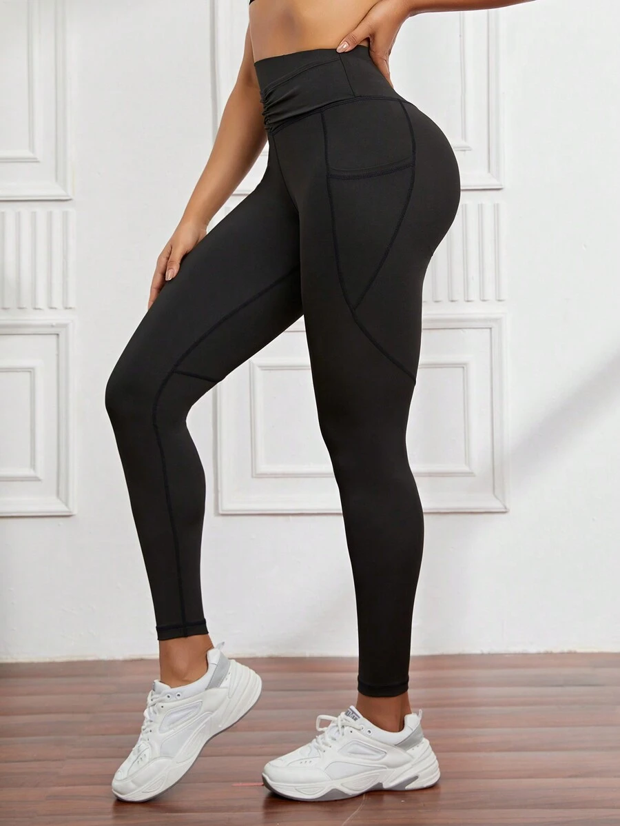 Leggings deportivos de cintura ancha bolsillo de celular