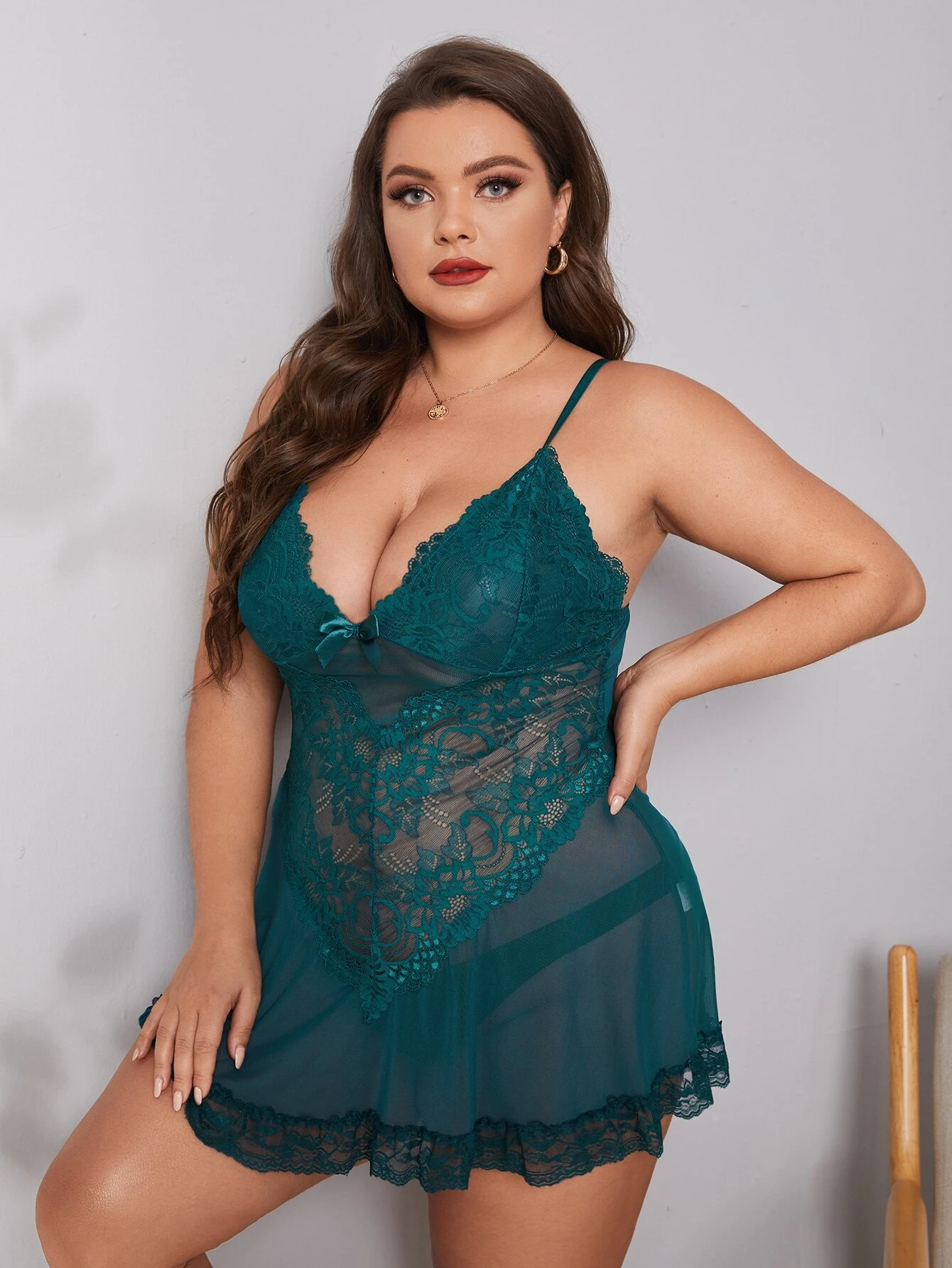 Lenceria con encaje en contraste de malla