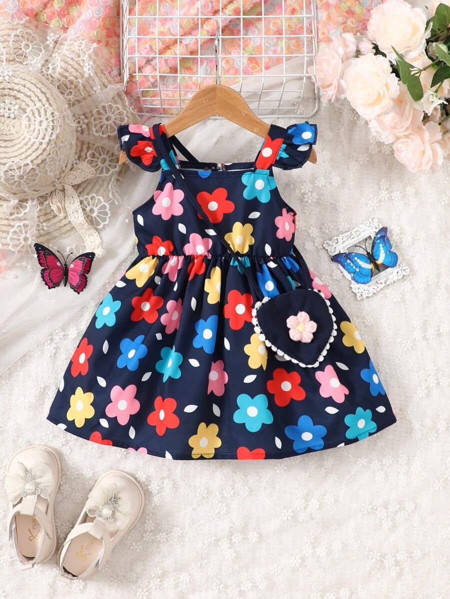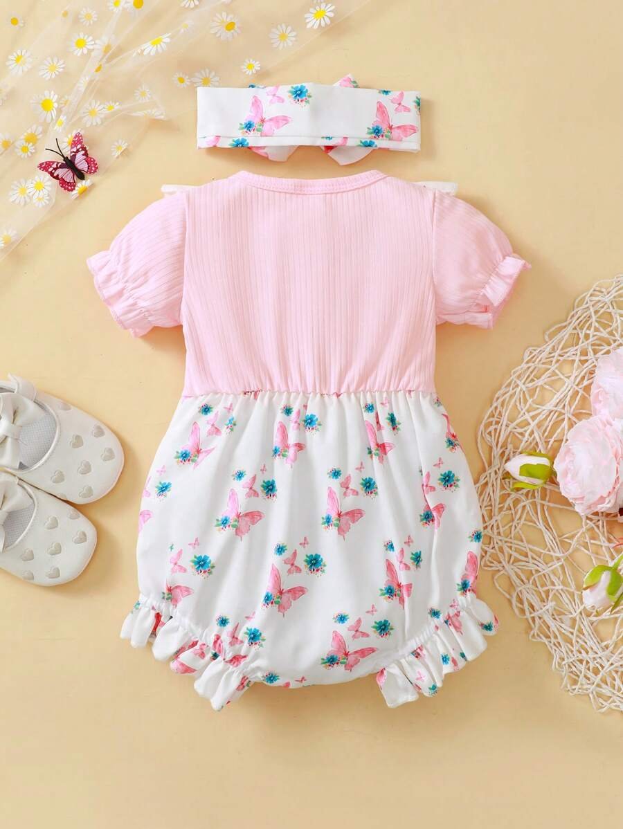 Mameluco De Cuello Redondo Para Ni?a Con Parche De Flores