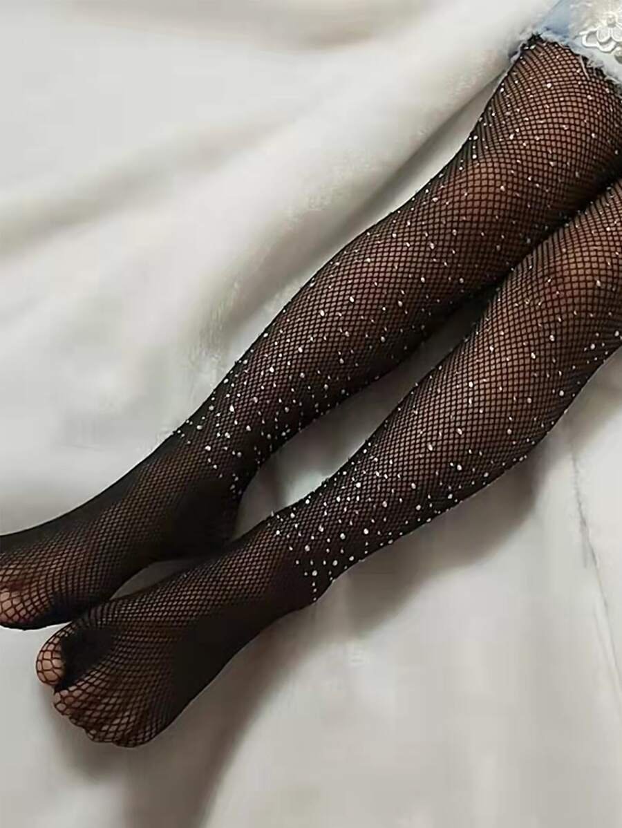 Medias de malla con dise?o de diamante de imitaci?n para vida diaria