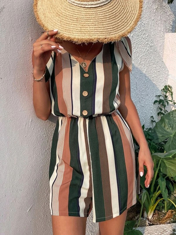 Mono de rayas combinadas de hombros con cord?n