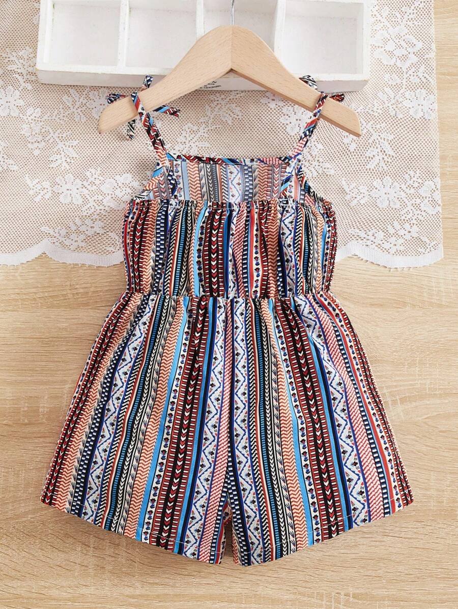 Mono De Tirantes Con Estampado Geométrico Y De Rayas