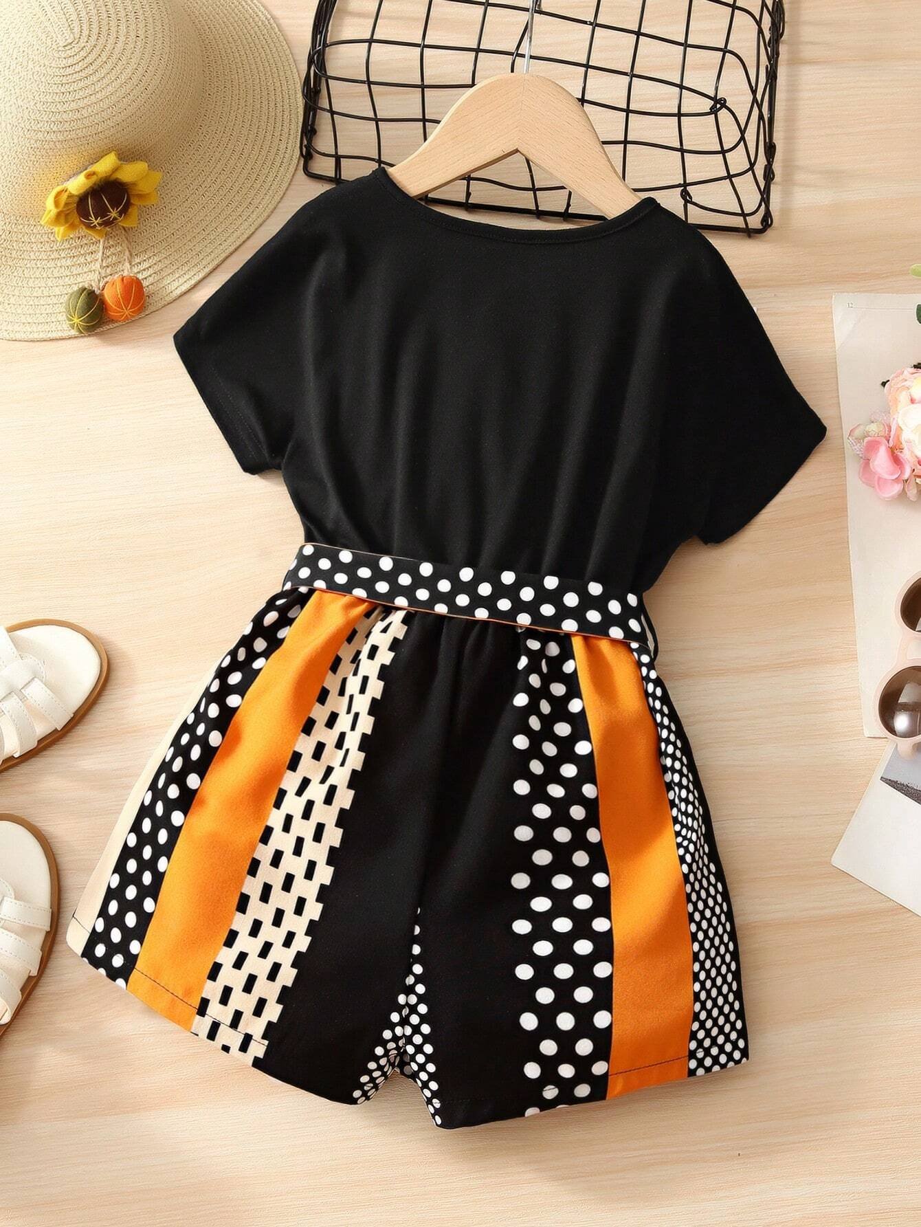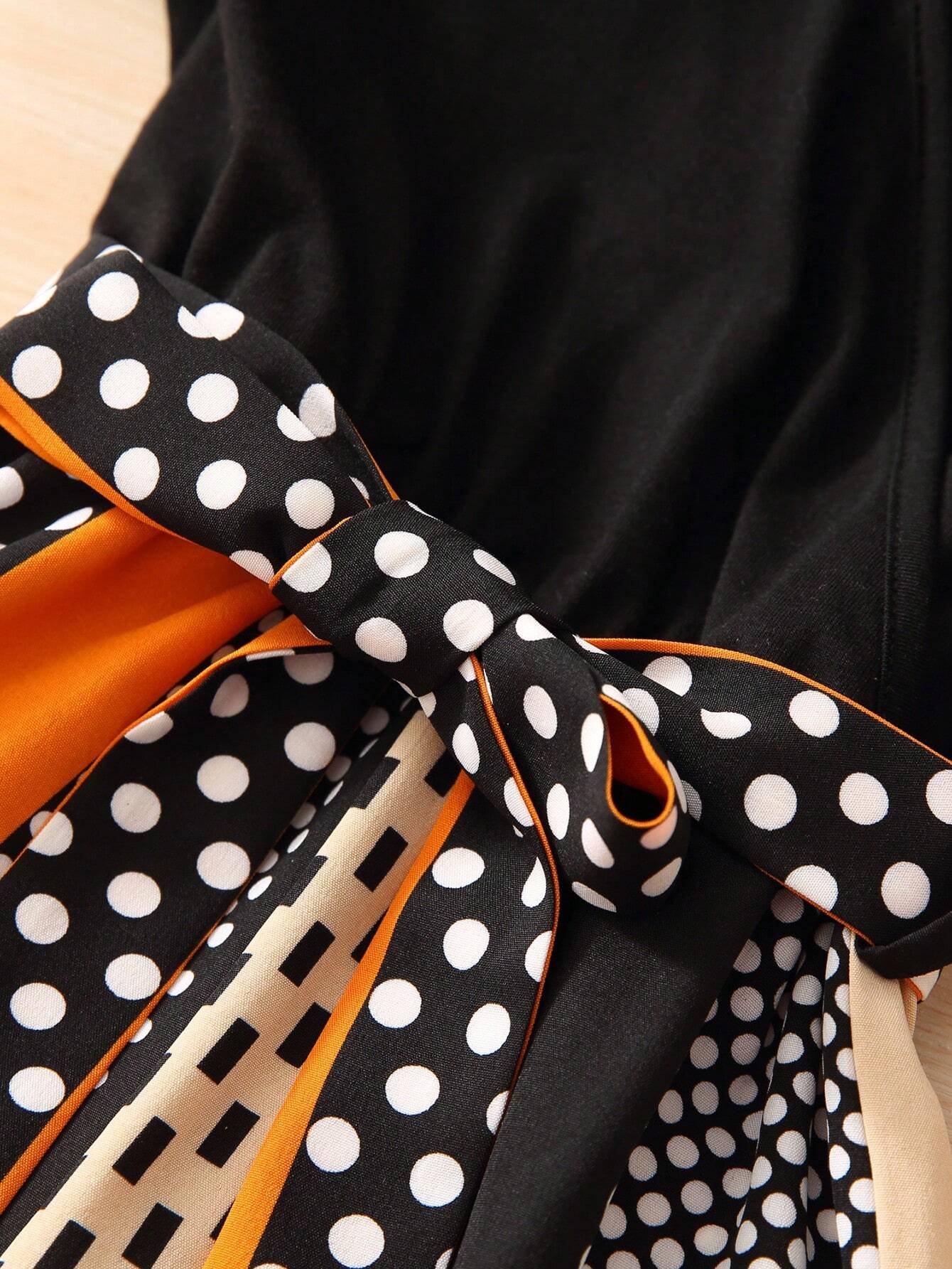 Ni?as Mono de lunares & con estampado geom?trico con cintur?n