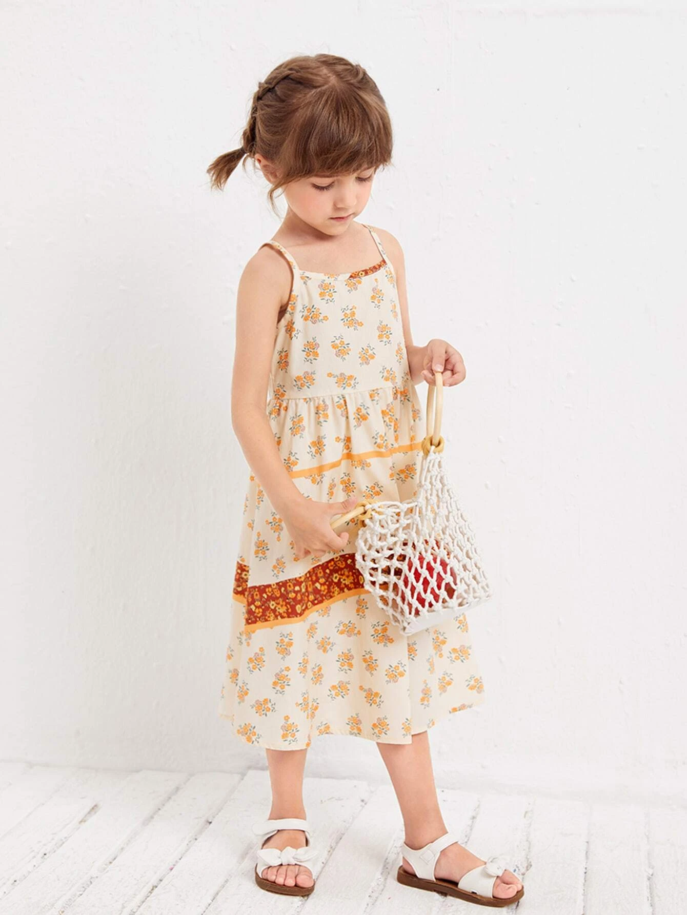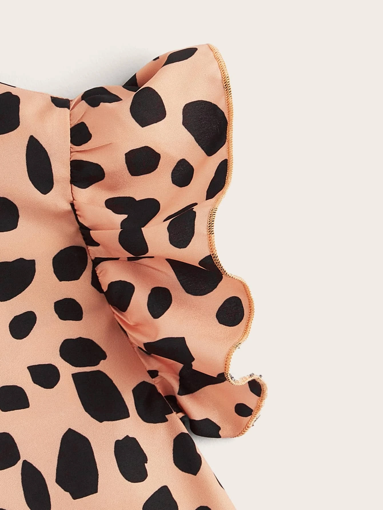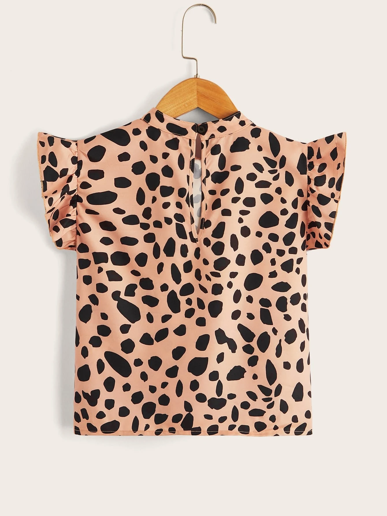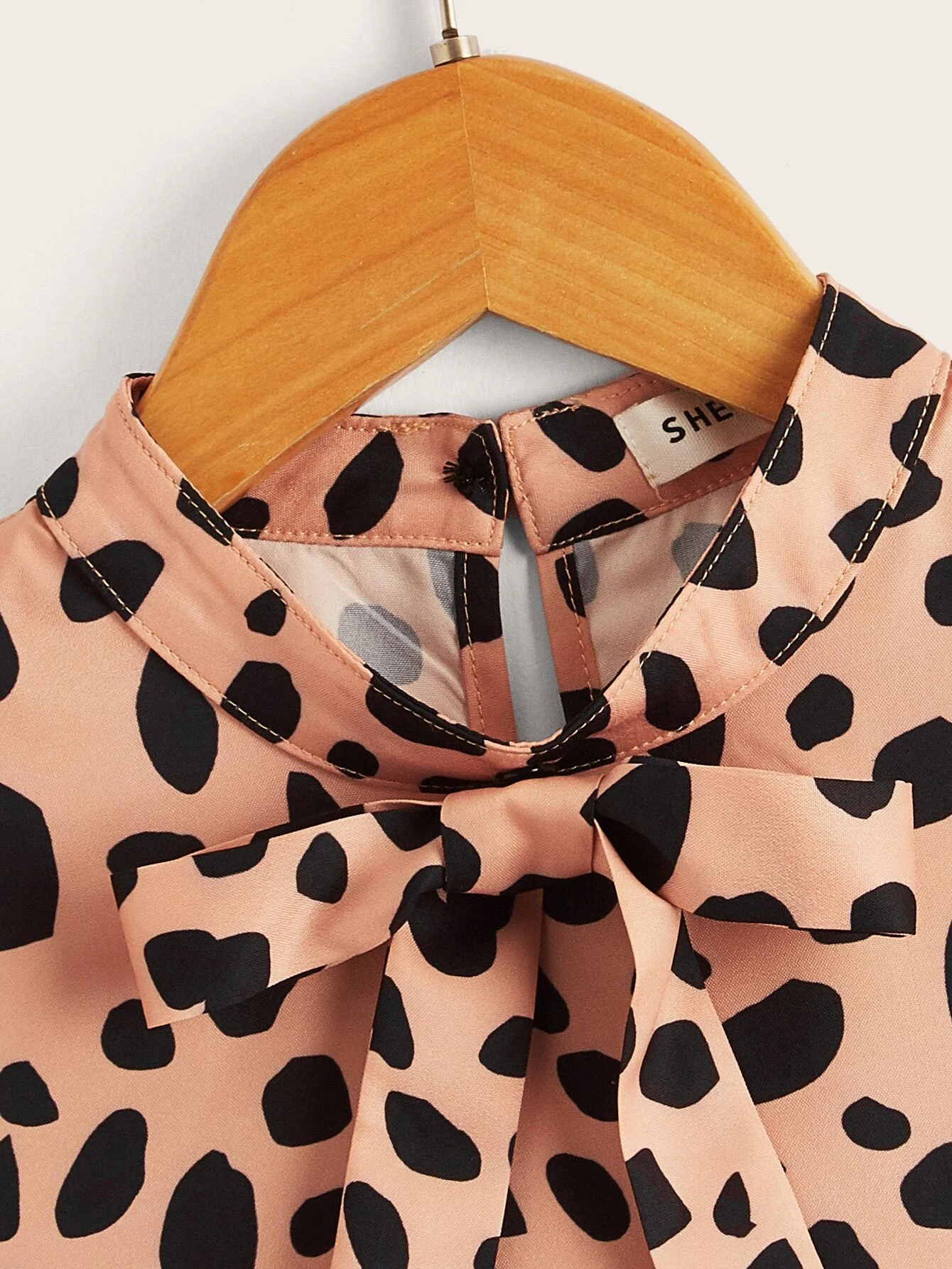 Ni?as Top con estampado de cuello con cord?n de manga mariposa
