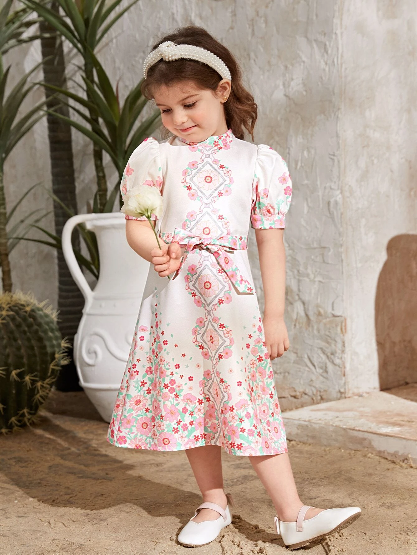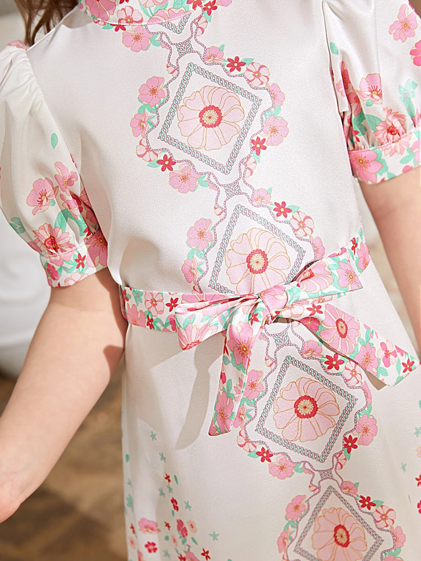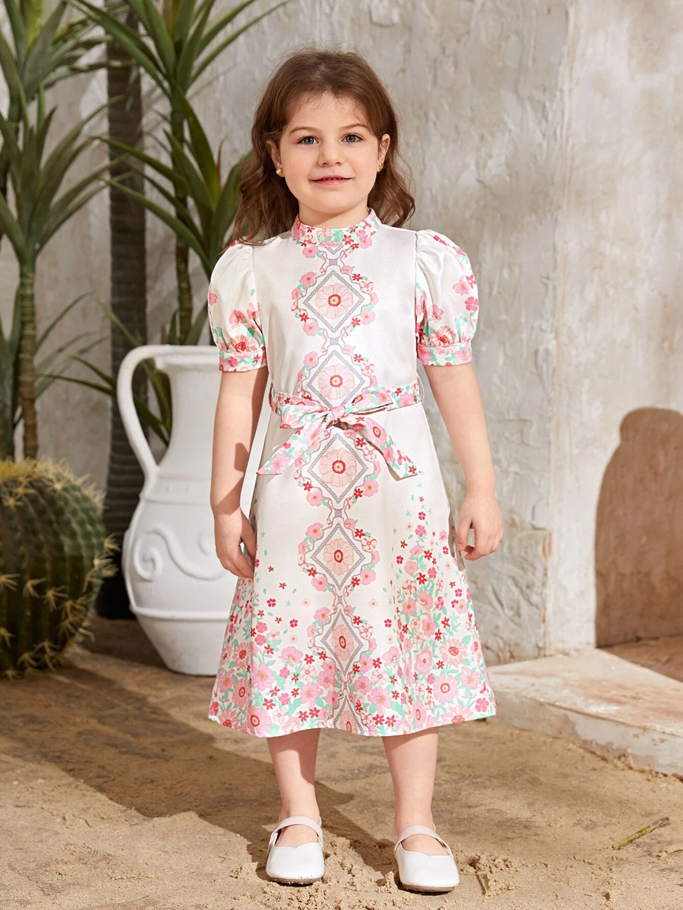 Ni?as Vestido con cintur?n con estampado floral de manga farol