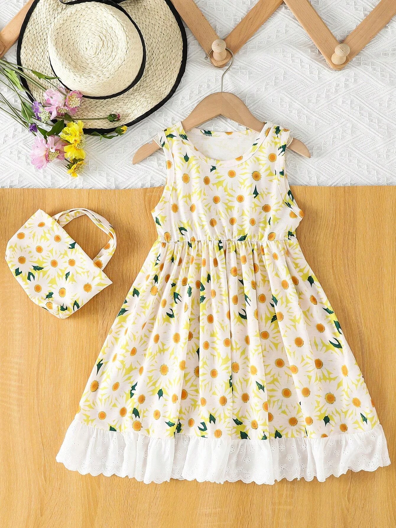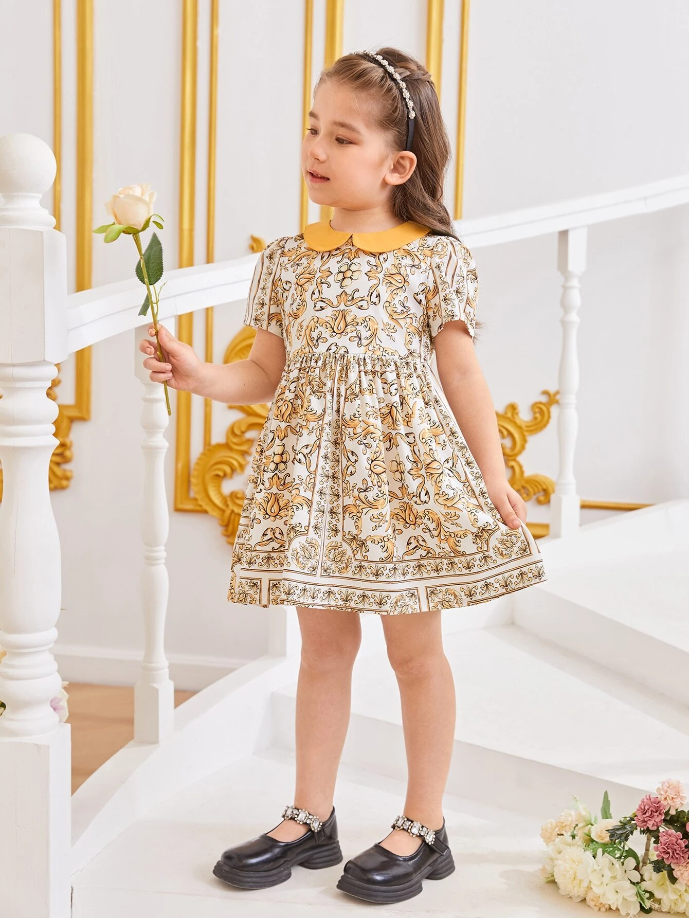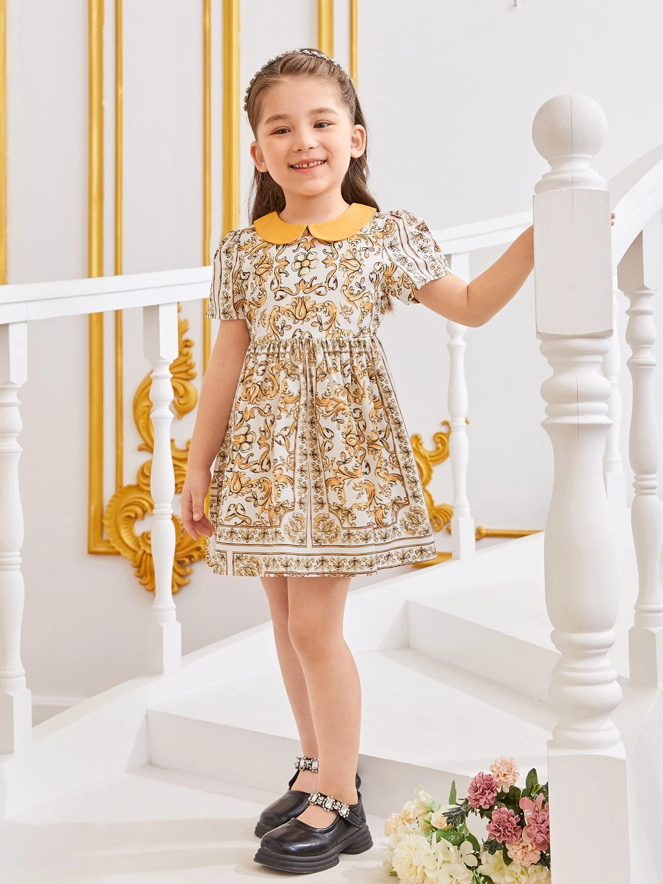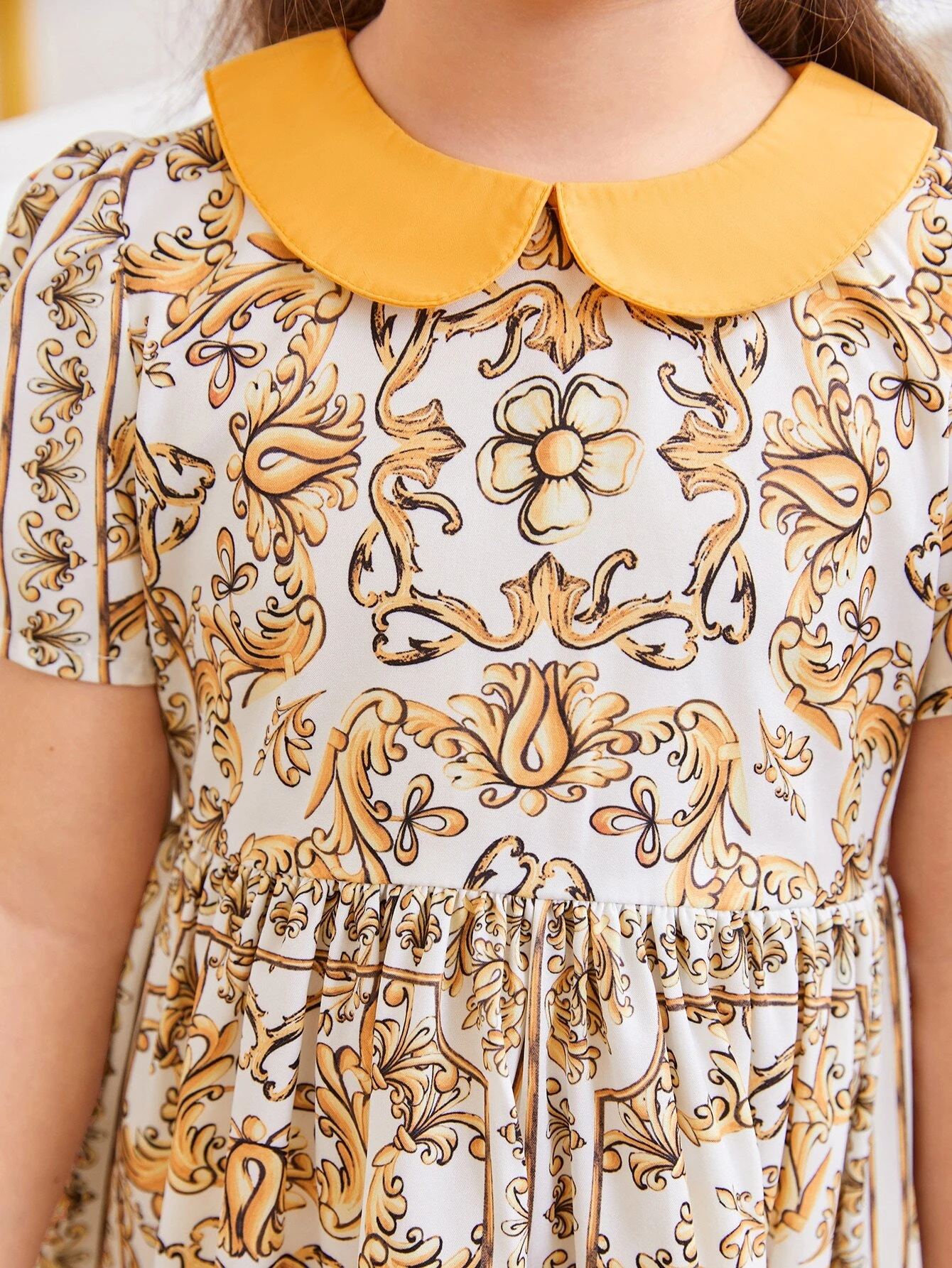 Ni?as Vestido con estampado barroco de cuello en contraste