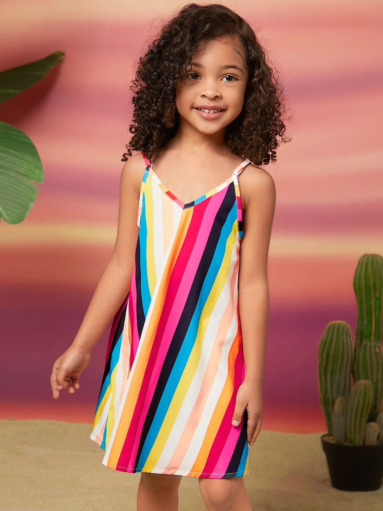 Ni?as Vestido de tirantes de rayas de arco?ris