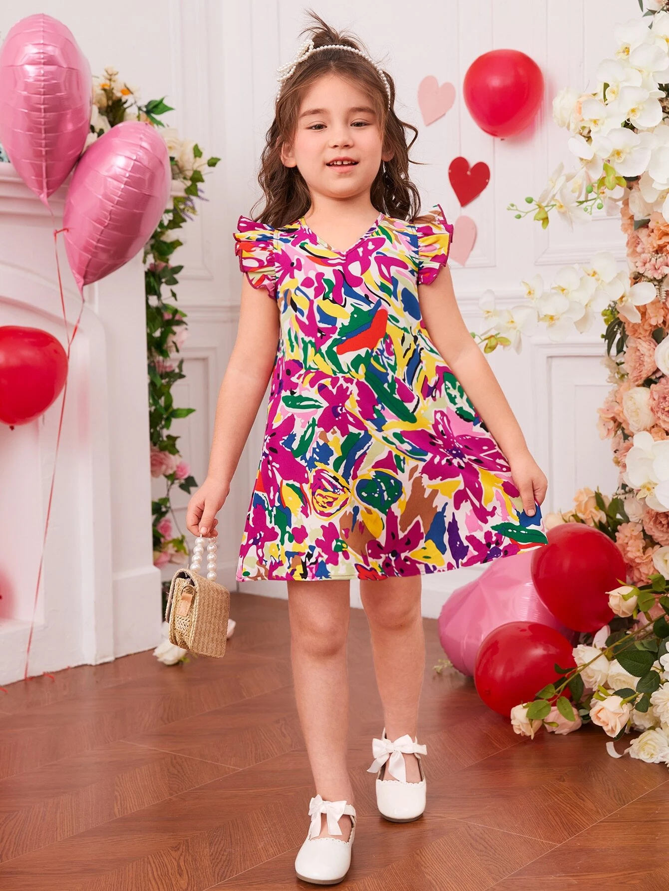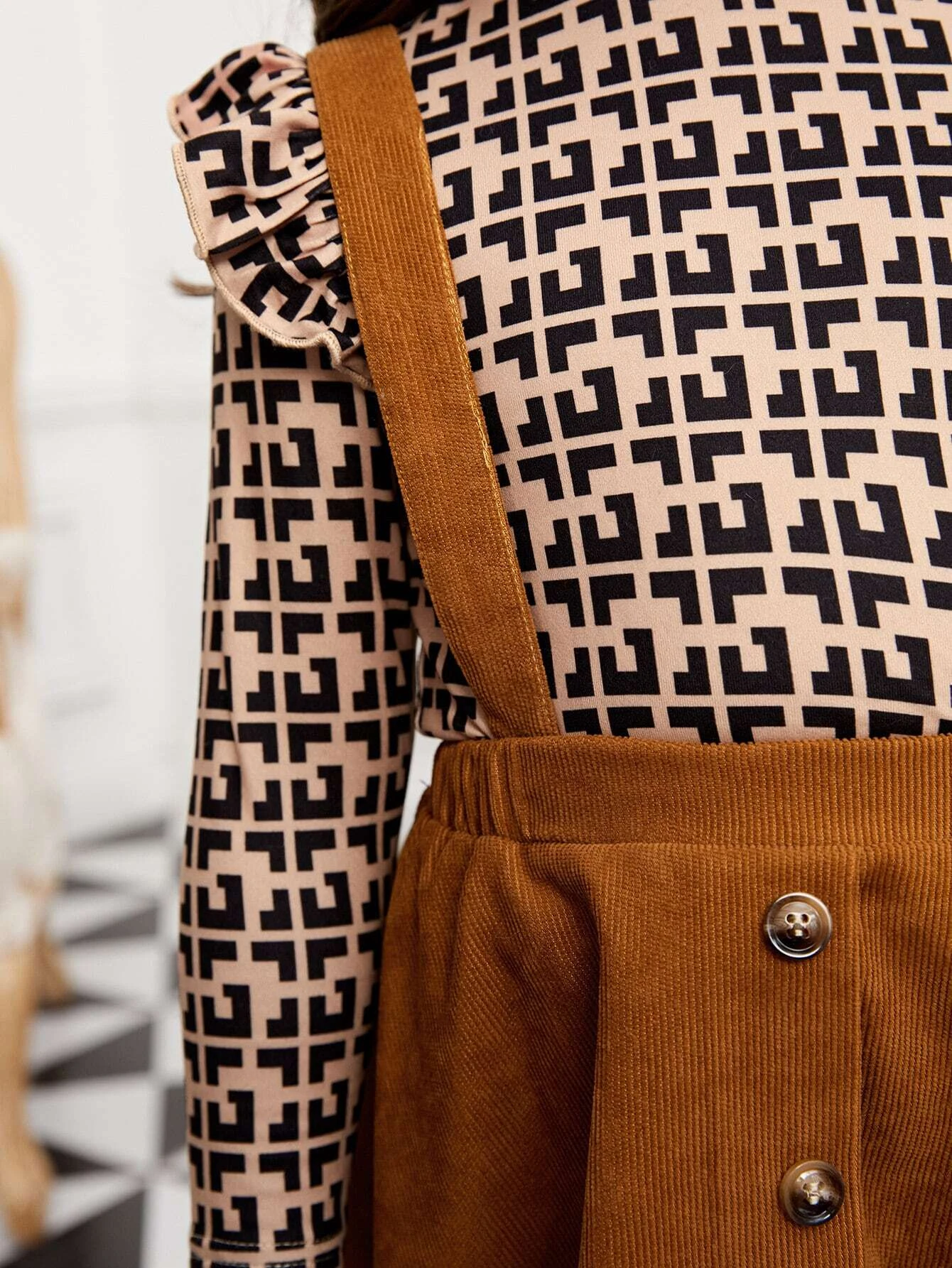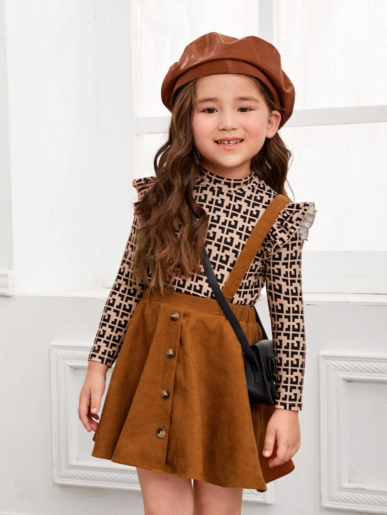 Ni?itas de cuello alto con dise?o fruncido con estampado de dibujo Camiseta & Falda pichi
