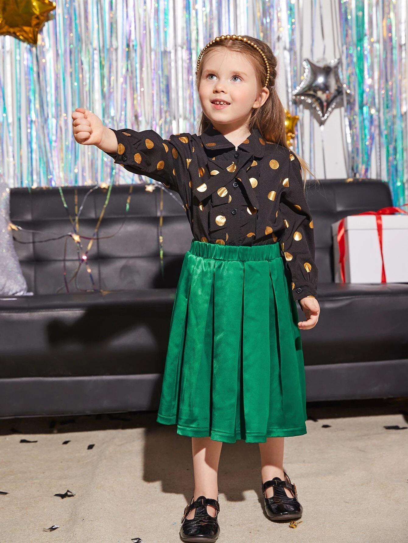 Ni?itas Falda de cintura el?stica fruncido de sat?n