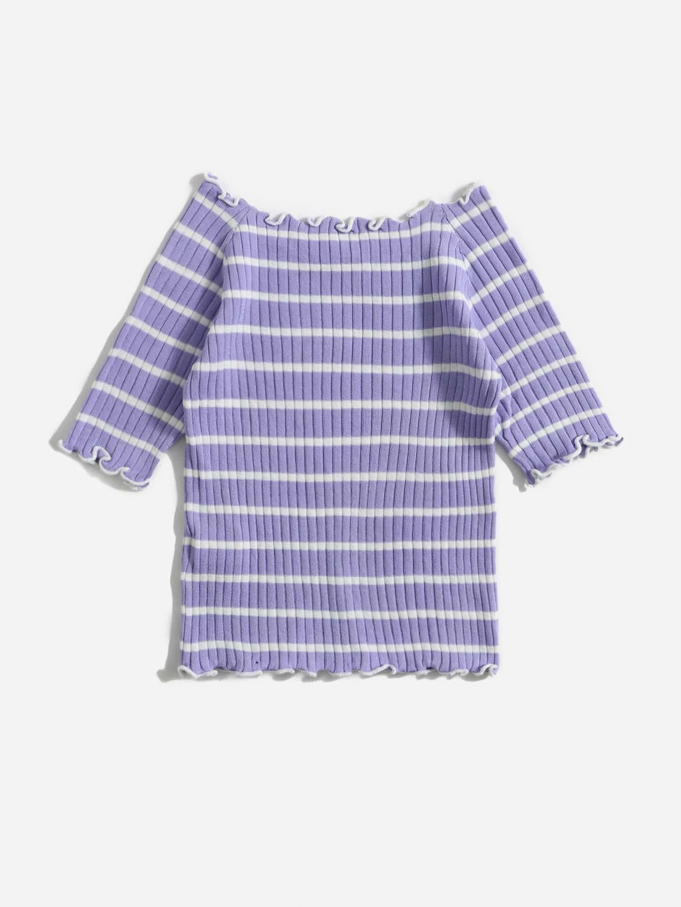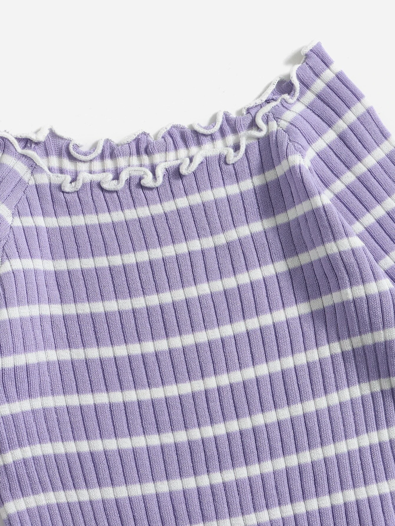 Ni?itas Jersey con patr?n de rayas ribete en forma de lechuga de manga ragl?n