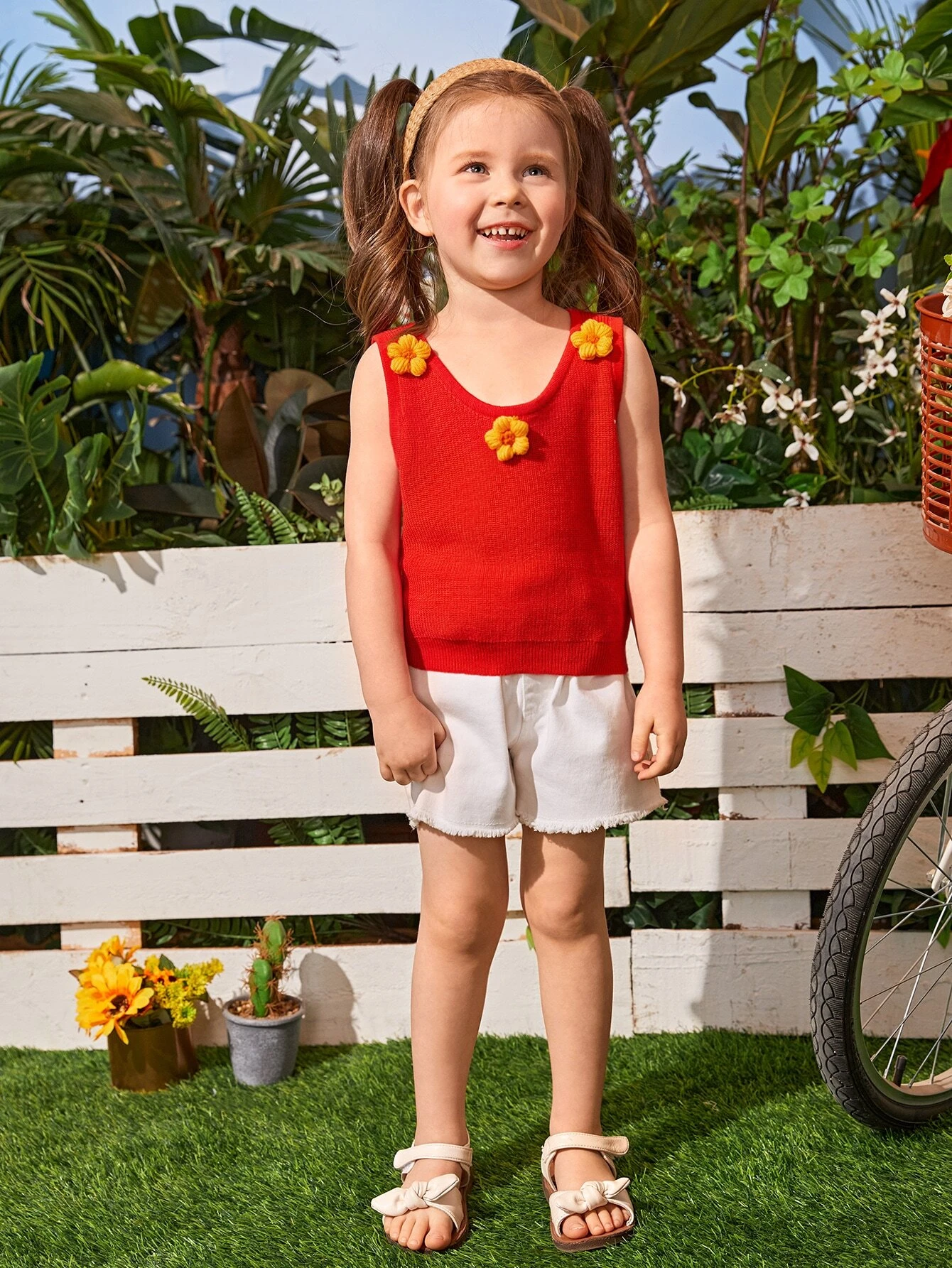 Ni?itas Top de punto tejido de canal? aplique floral