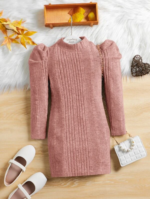 Ni?itas Vestido de cuello alto de manga farol sin cintur?n
