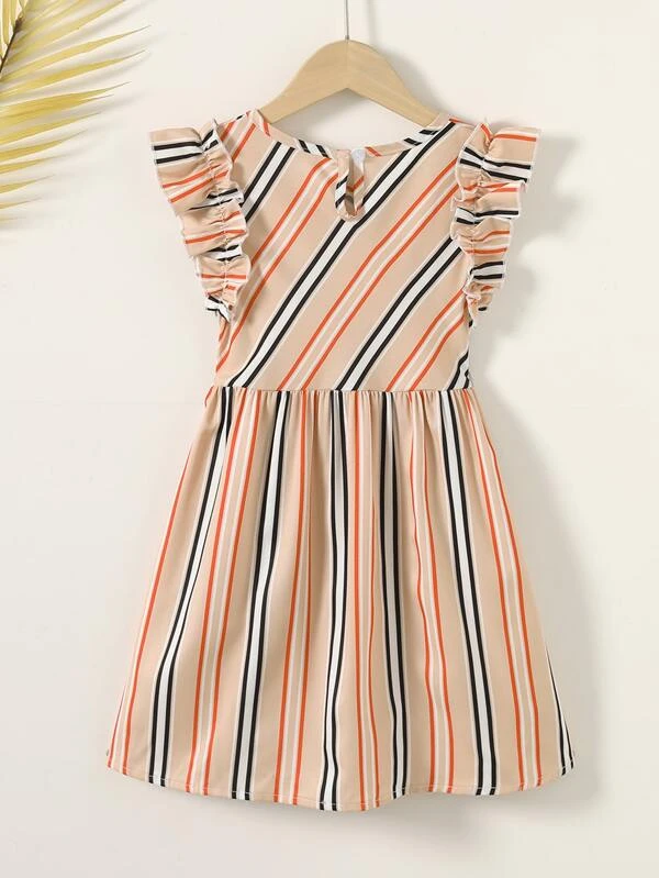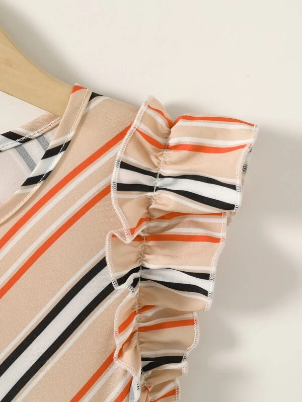 Ni?itas Vestido sin manga de rayas combinadas ribete con fruncido