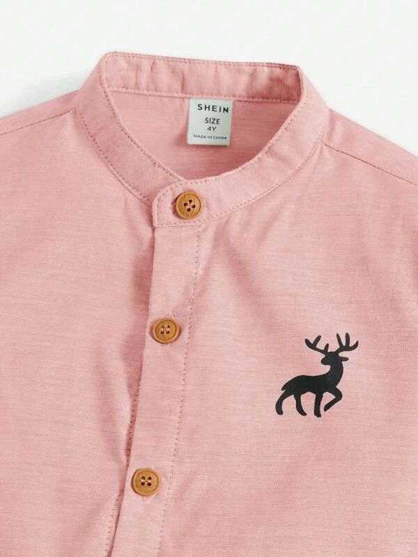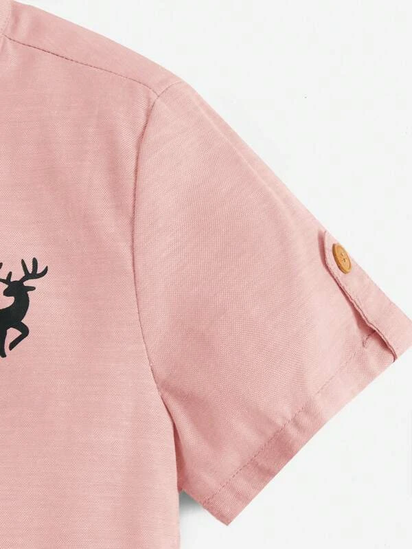 Ni?ito con estampado de ciervo de manga Camisa & Shorts