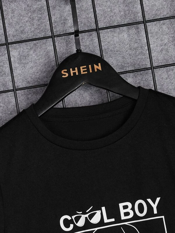 Ni?os Shorts con camiseta con estampado de letra japonesa y dibujos animados