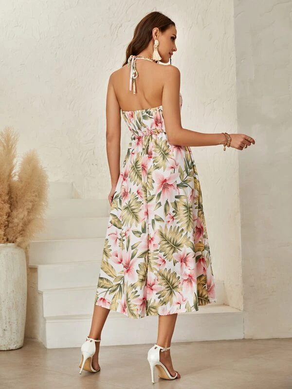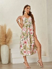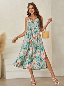 Vestido Largo para Dama con Abertura, Sin Mangas, Estampado Floral