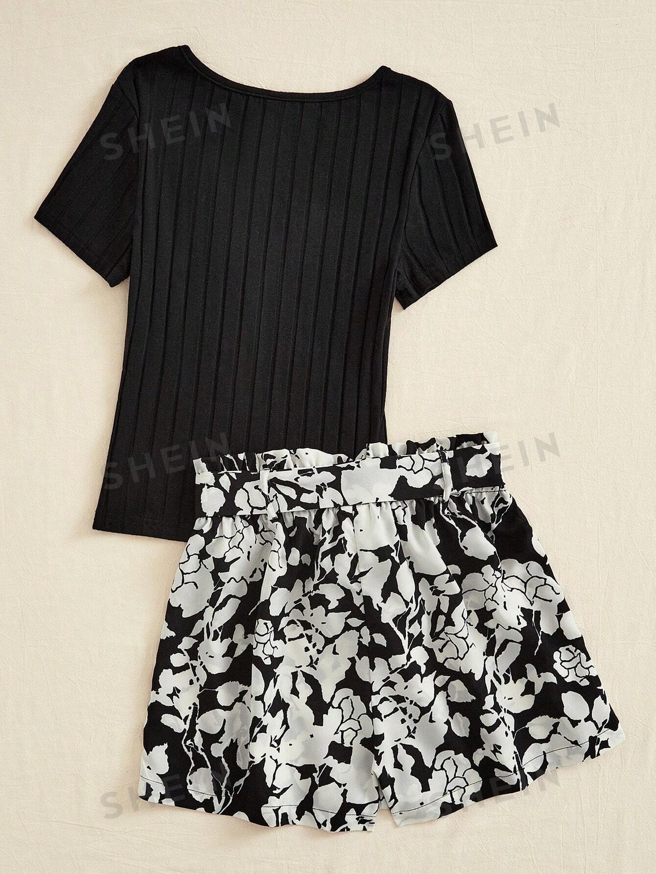 Conjunto De Dos Piezas Para Mujeres Con Camiseta De Manga Corta