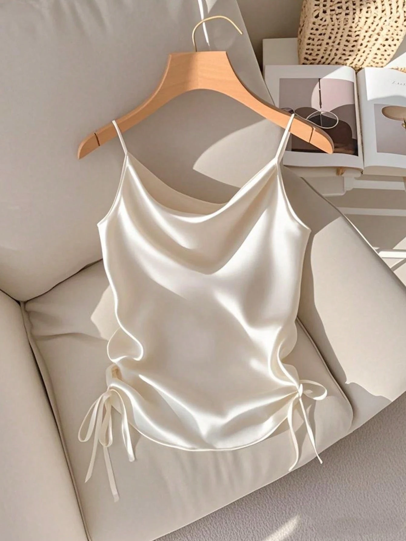op con tirantes y cuello drapeado con estampado de teñido anudado