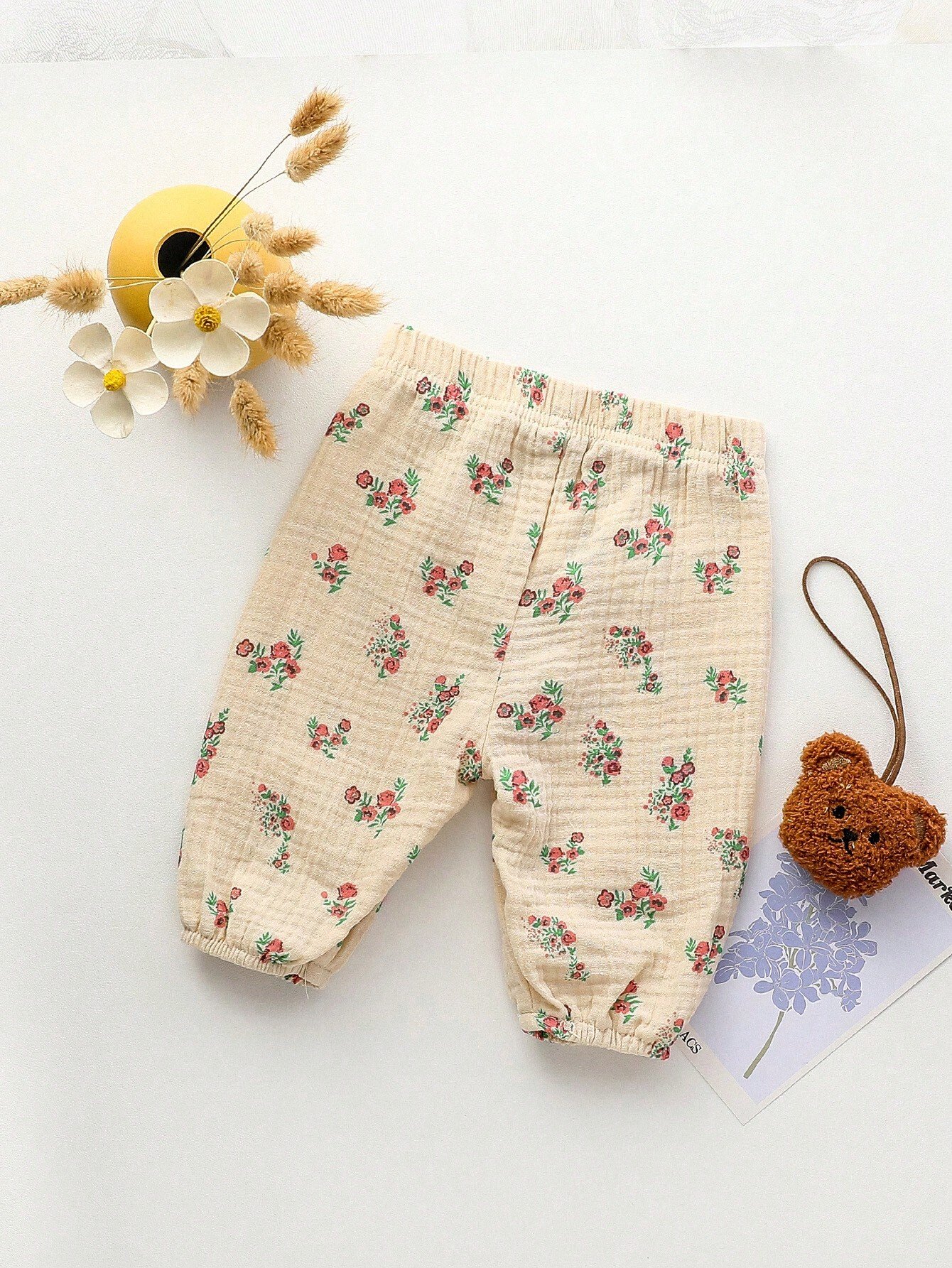 Pantal?n Casual De Lino Para Beb? Ni?a Con Estampado Floral Peque?o