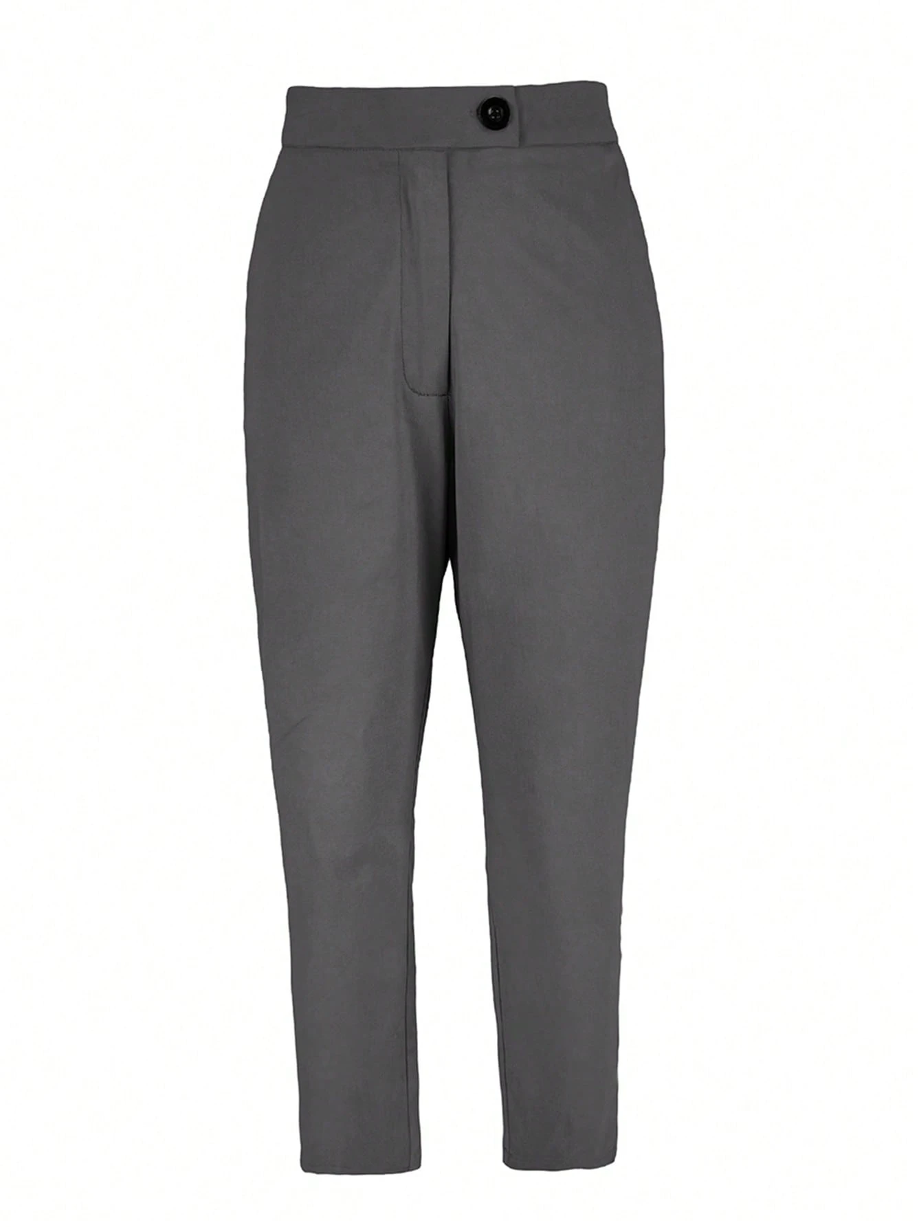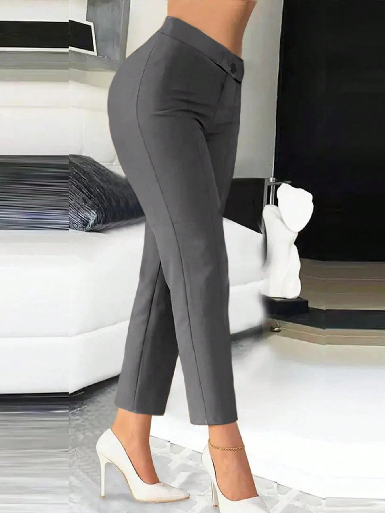 Pantalón casual de mujer de cintura alta liso con botón y cremallera