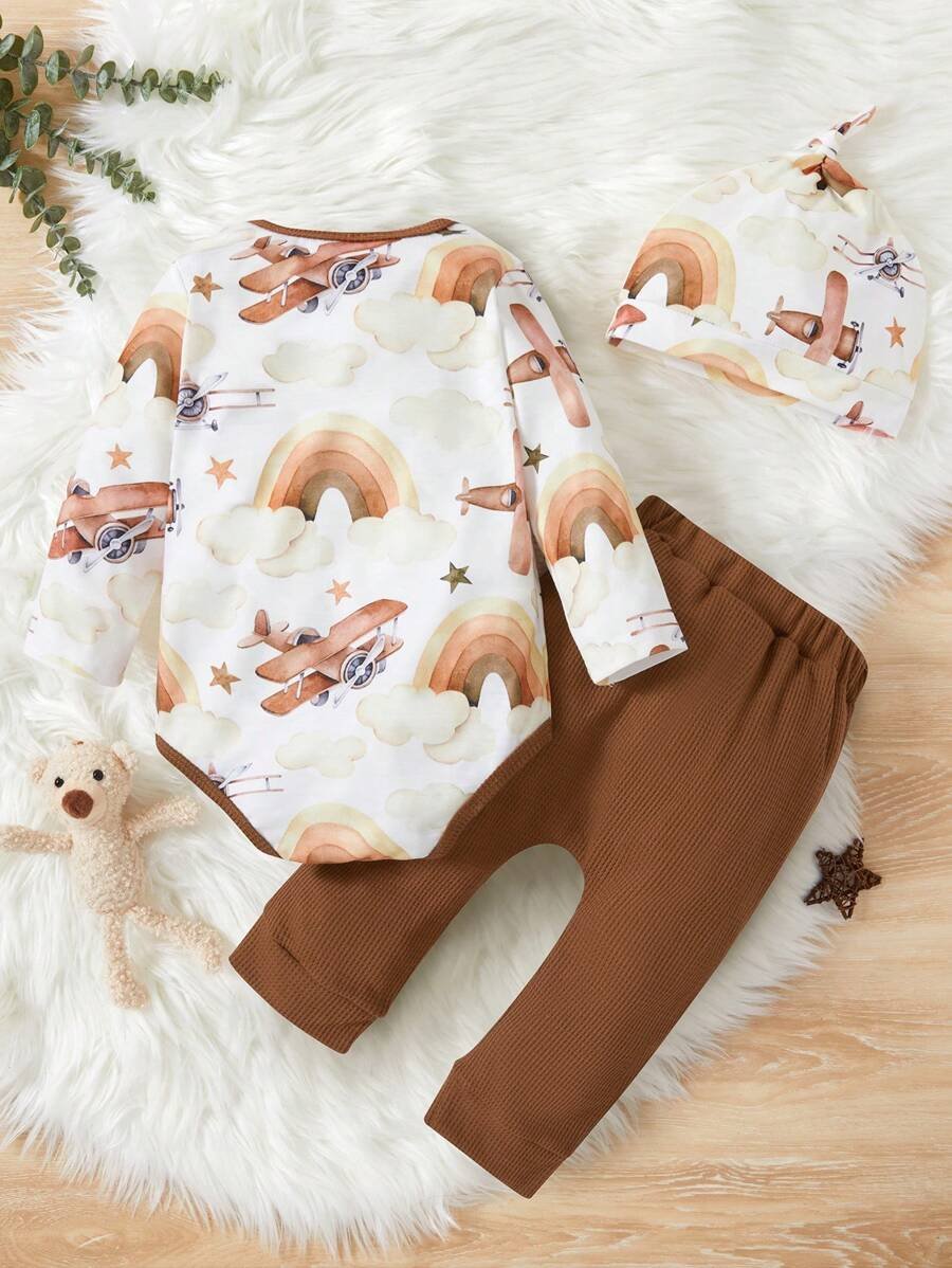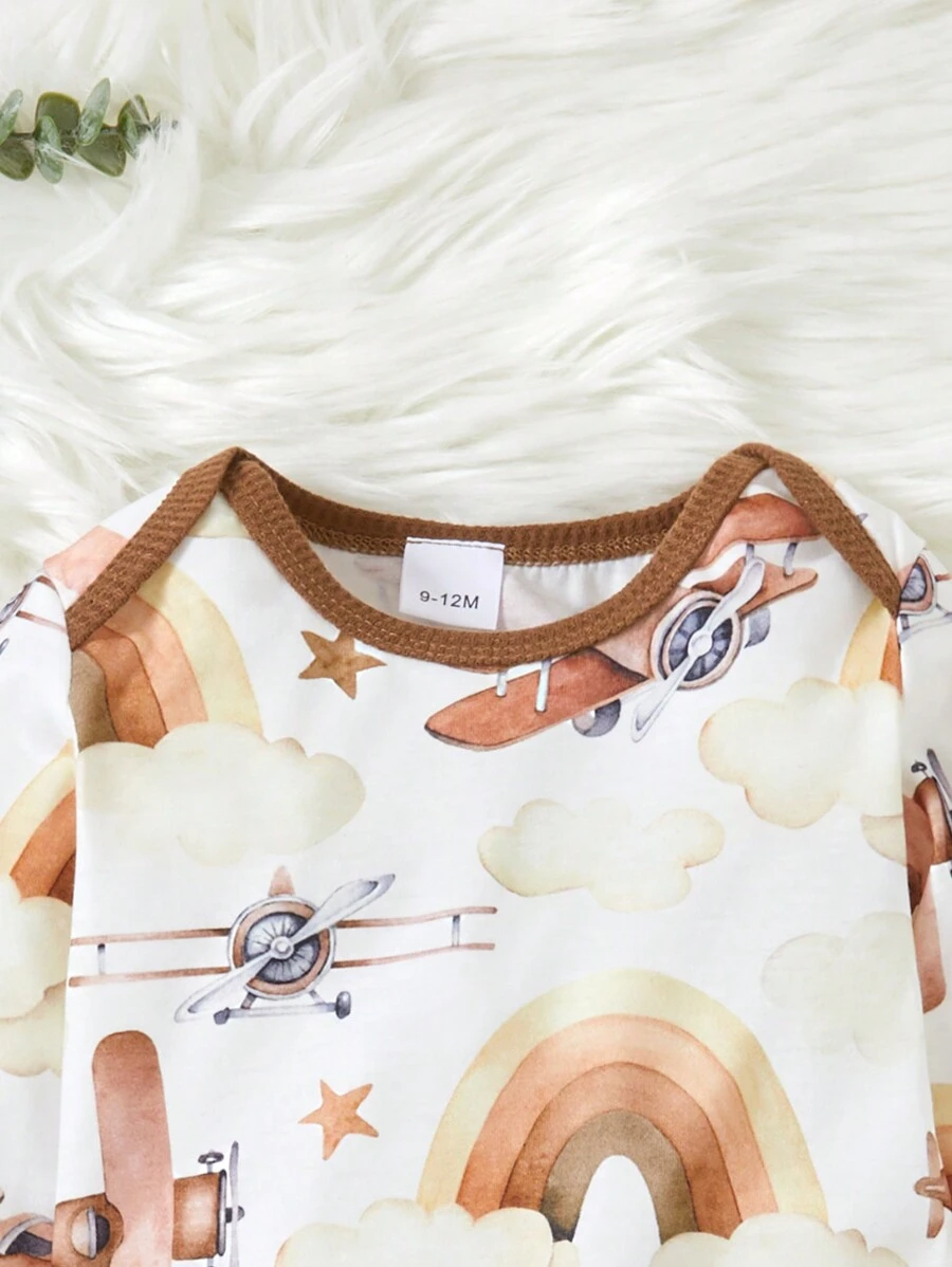 Pantal?n Y Body De Manga Larga Con Cuello Redondo Y Estampado De Arco Iris Para Beb? Ni?o