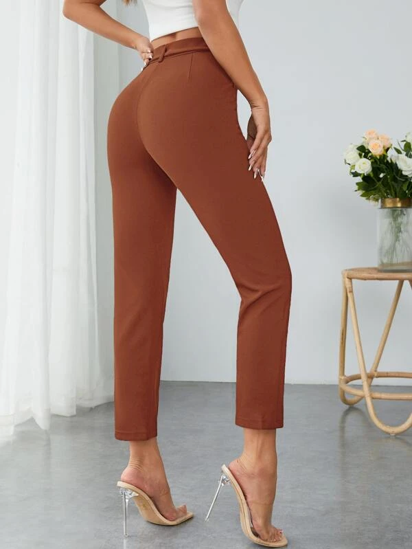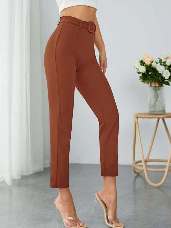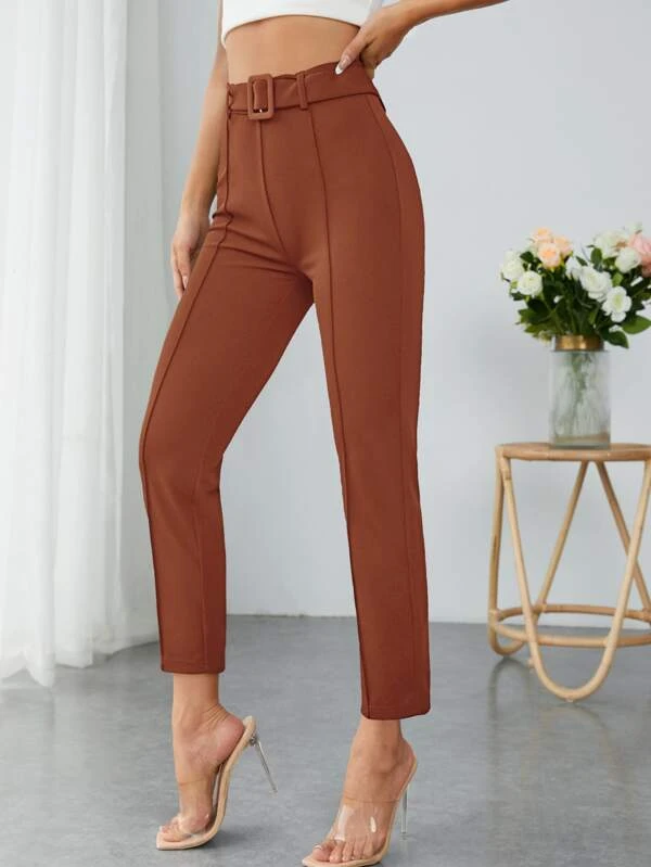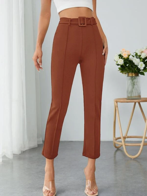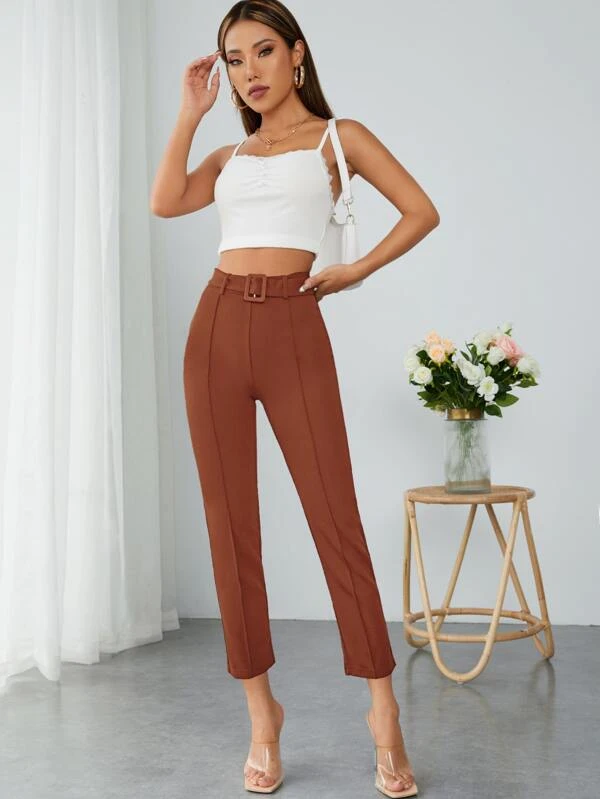 Pantalones c?nicos de talle alto con costura con hebilla con cintur?n